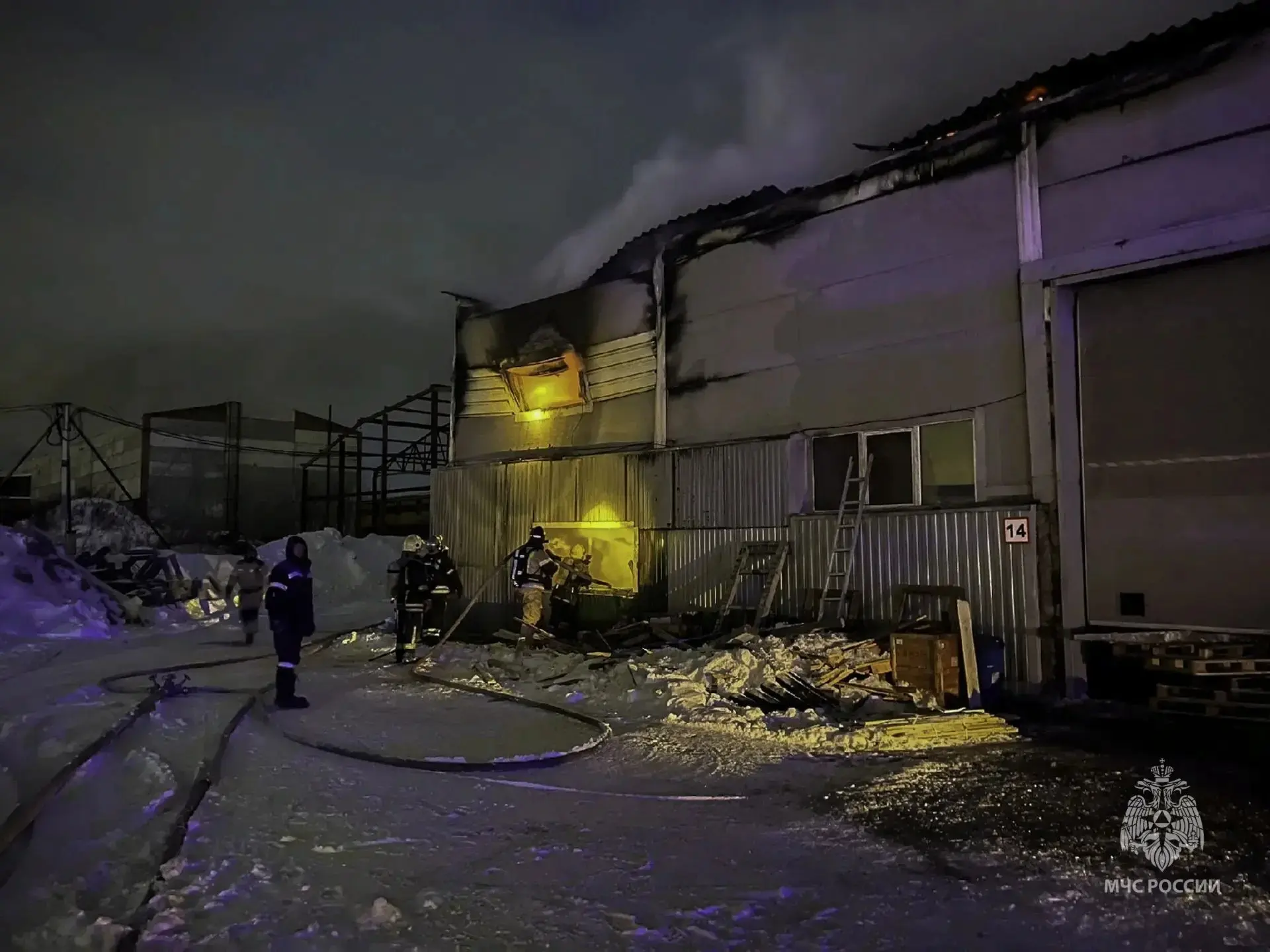 Возгорание на 450 квадратах ликвидировали 38 сотрудников МЧС России, задействовав 14 единиц техники.