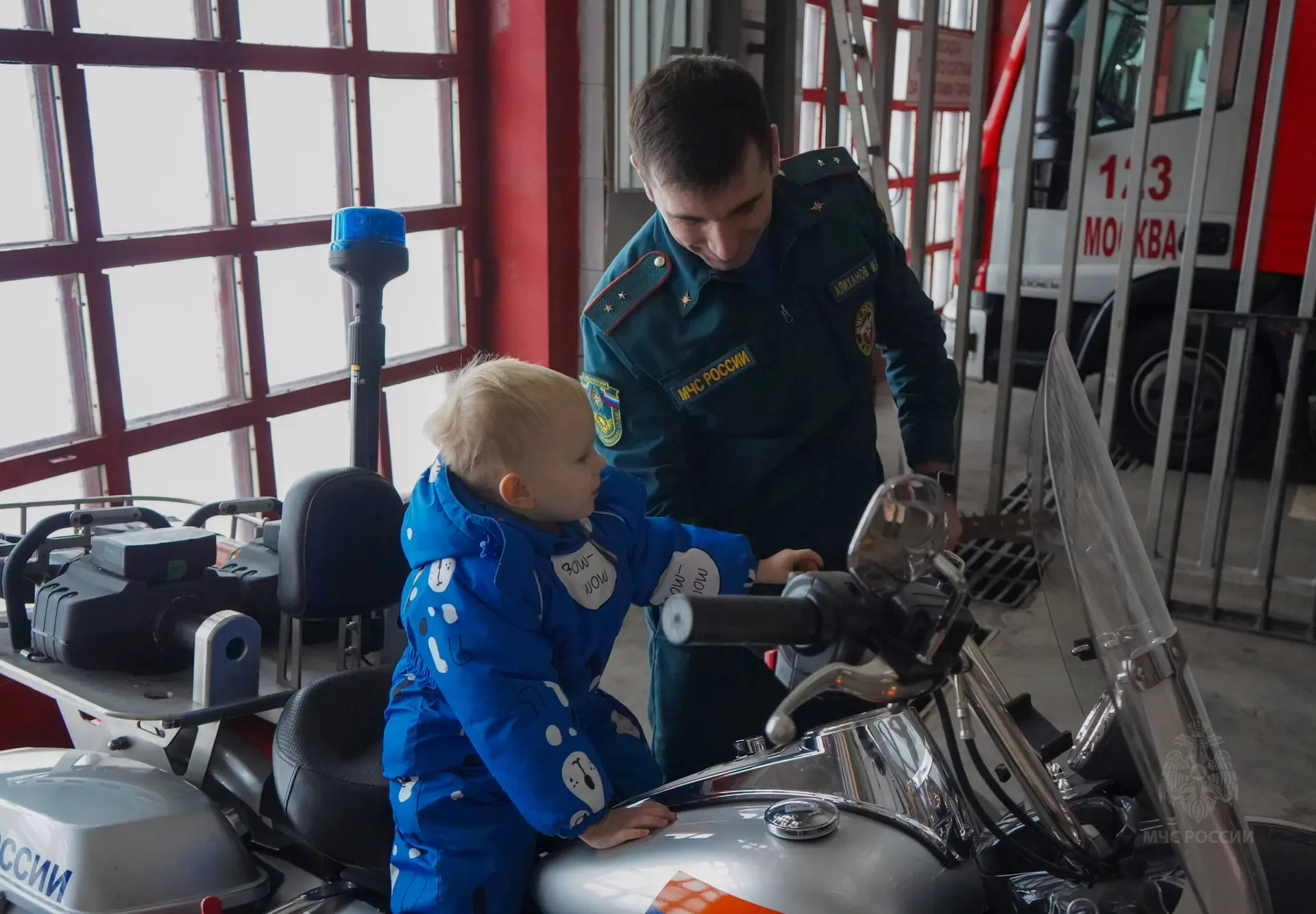 ⭕Специалисты чрезвычайного ведомства организовали для Миши незабываемую экскурсию, в ходе которой маленький гость смог забраться в кабину автоцистерны, посидеть за рулем пожарного мотоцикла, примерить боевую одежду и побывать в диспетчерском пункте.