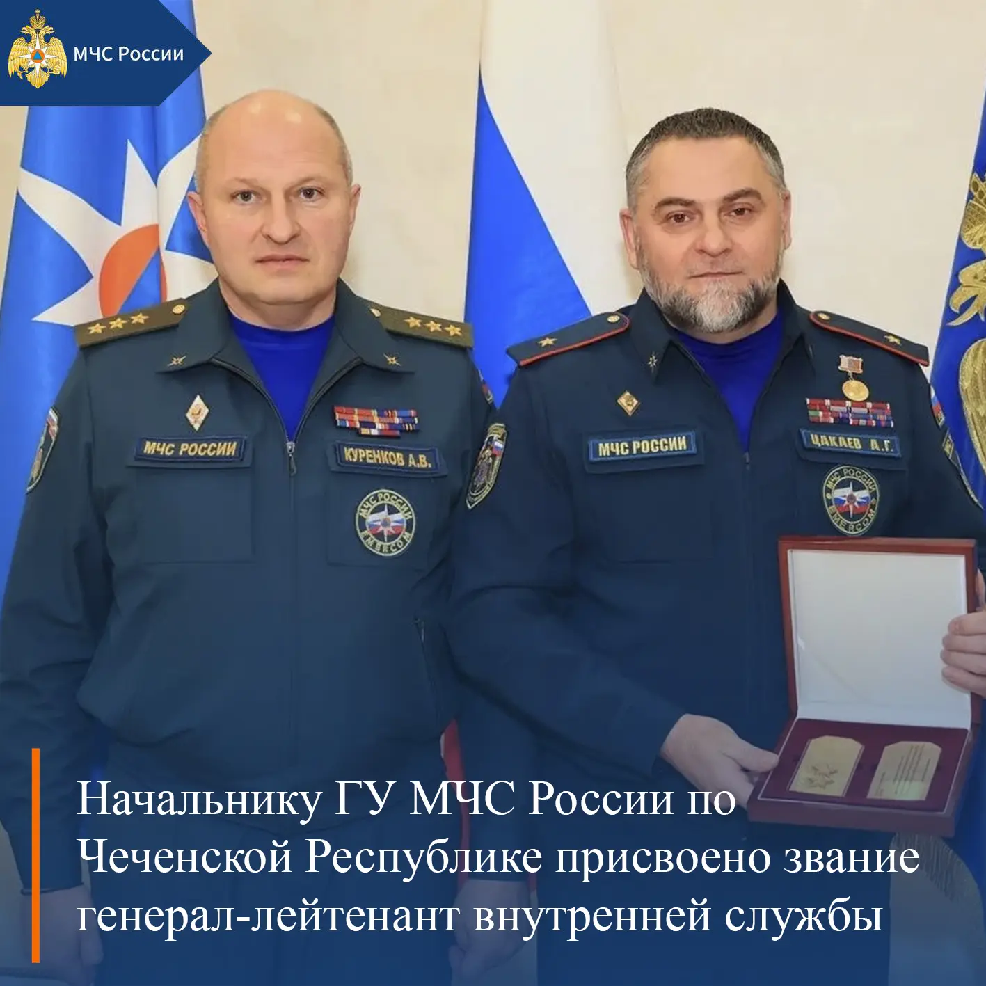🔹 Начальнику ГУ МЧС России по Чеченской Республике присвоено звание генерал-лейтенант внутренней службы
