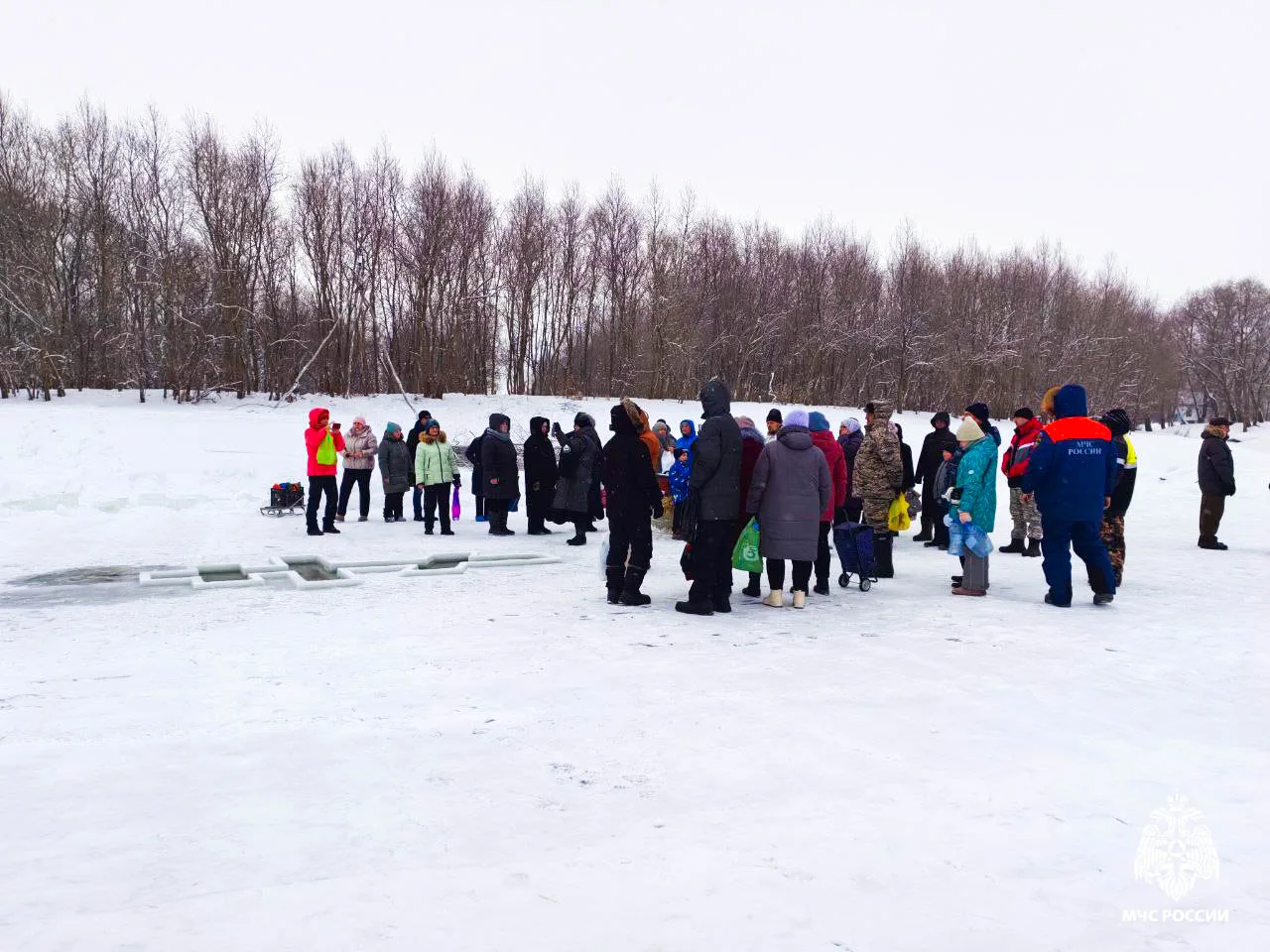 МЧС России призывает совершать обряд омовения исключительно в оборудованных для этого местах: здесь подготовлены специальные купели, организовано дежурство спасателей, врачей и сотрудников полиции.