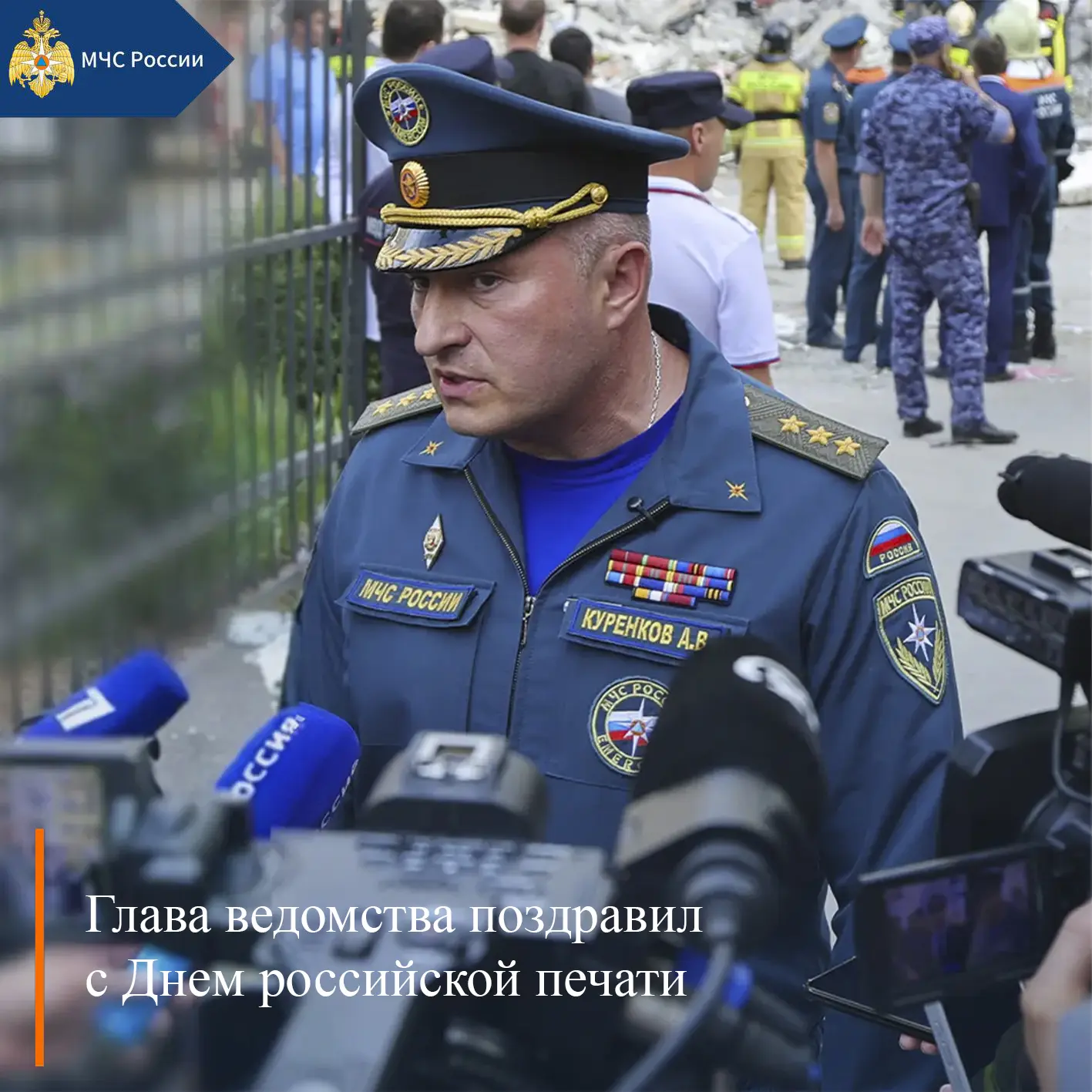 Поздравление главы МЧС России Александра Куренкова с Днем российской печати