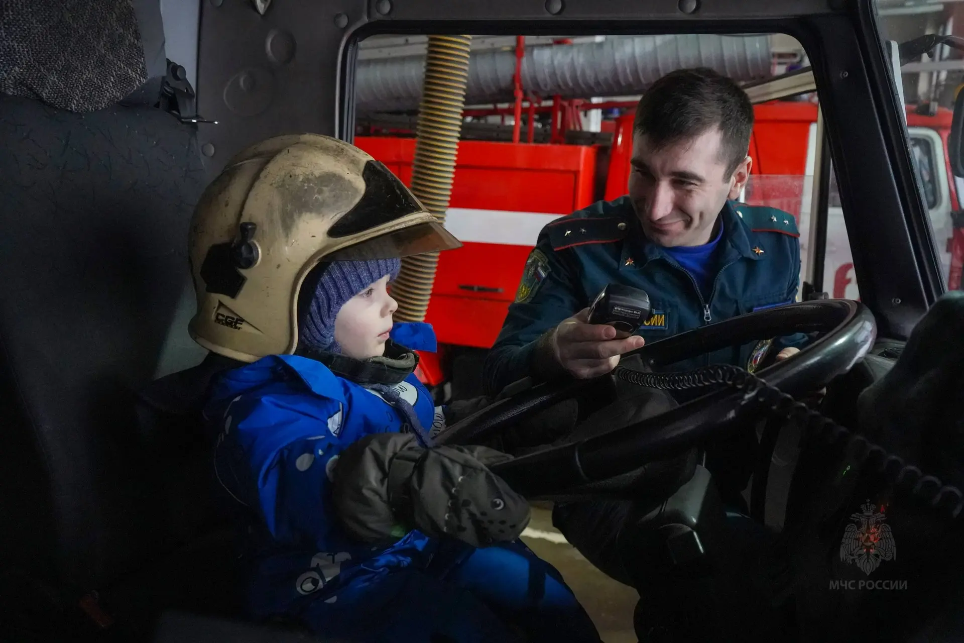 🧑🚒Сотрудники МЧС России рассказали Владу о профессии пожарного, провели небольшую экскурсию по помещениям части, показали боевую одежду огнеборца, профессиональную экипировку. За рулем пожарного автомобиля мальчик сначала растерялся - не ожидал увидеть так много кнопок, пультов и рычагов! Но после небольшого инструктажа освоился и даже сам смог включить звуковые и световые сигналы.