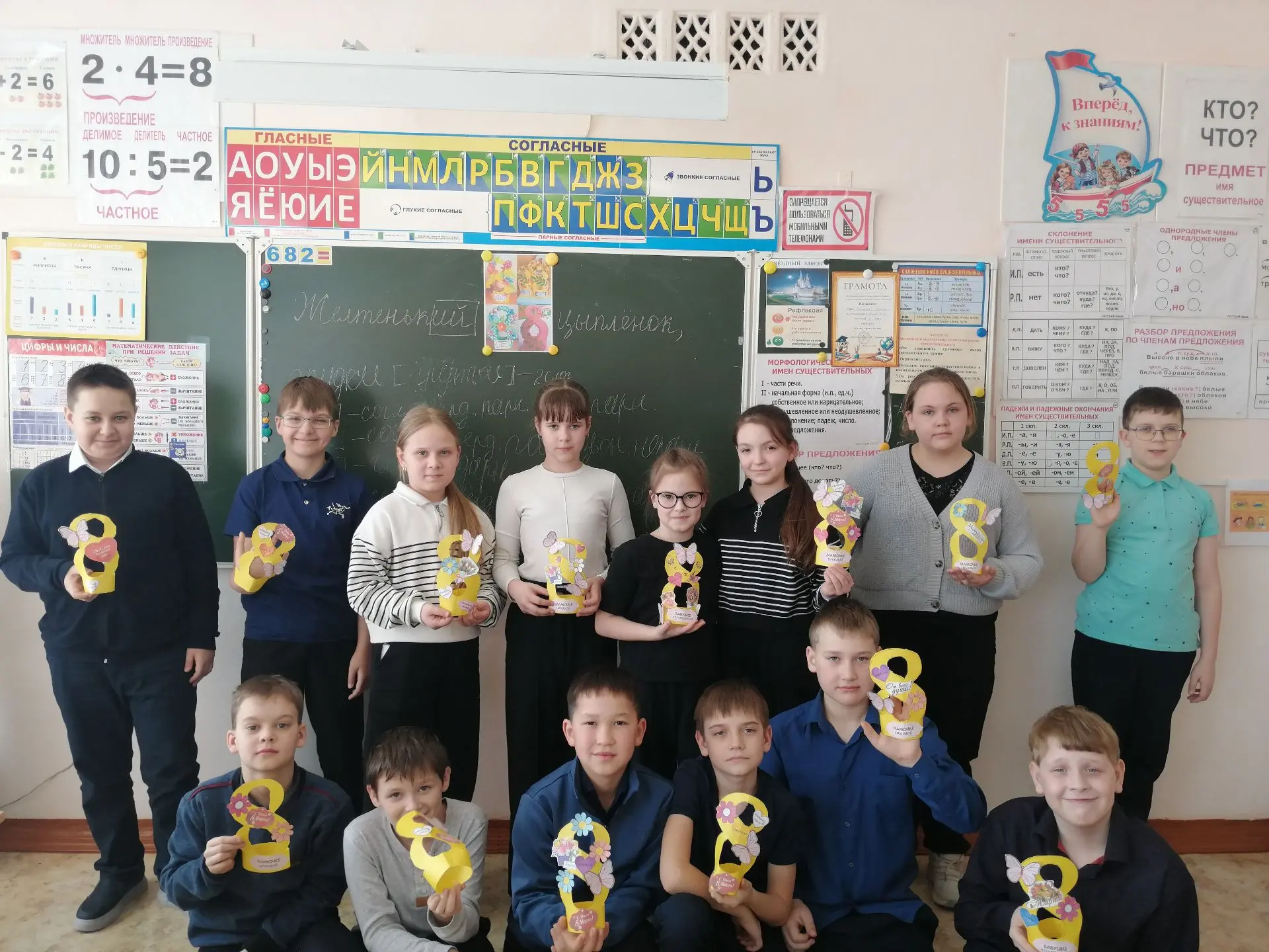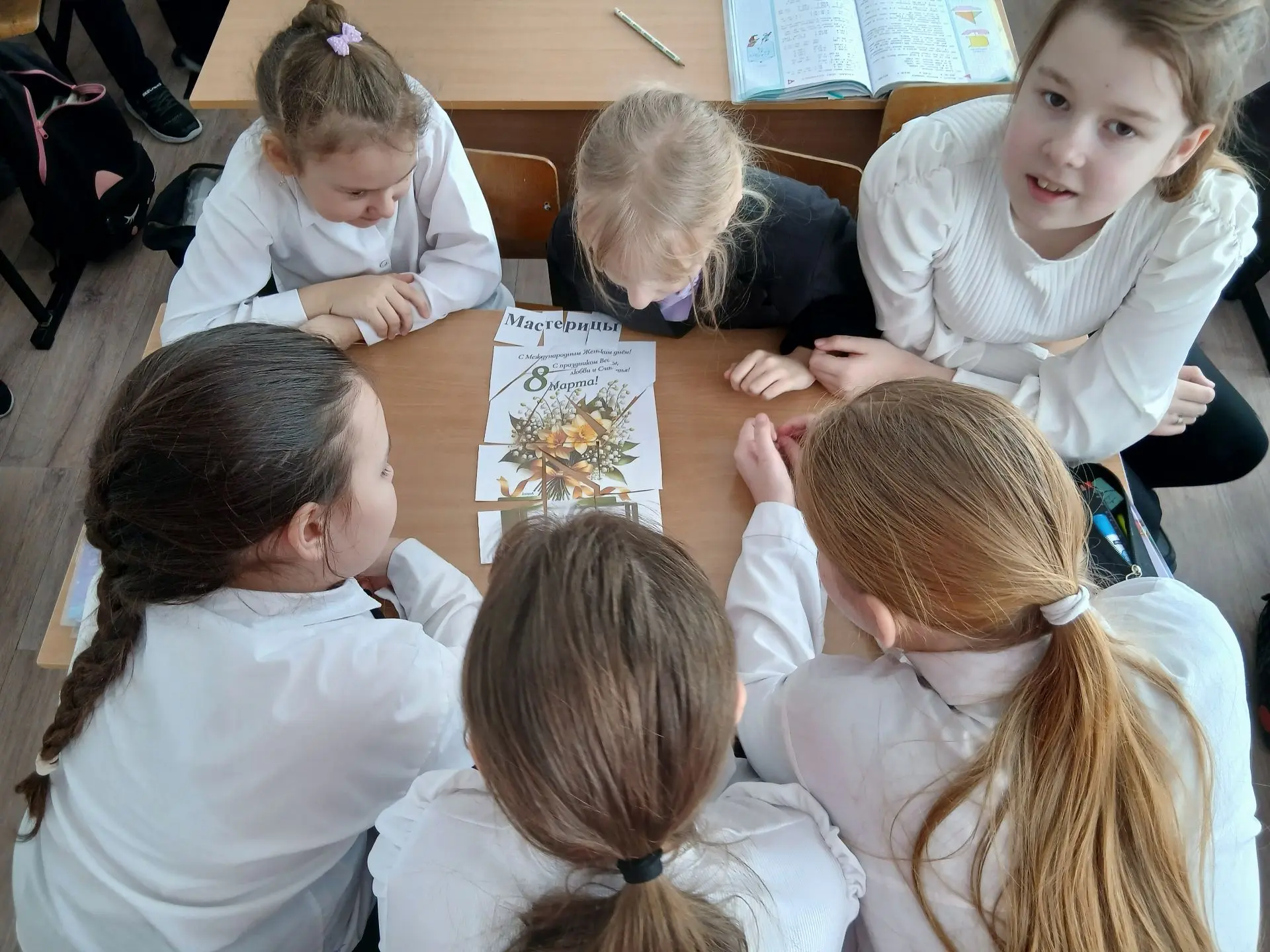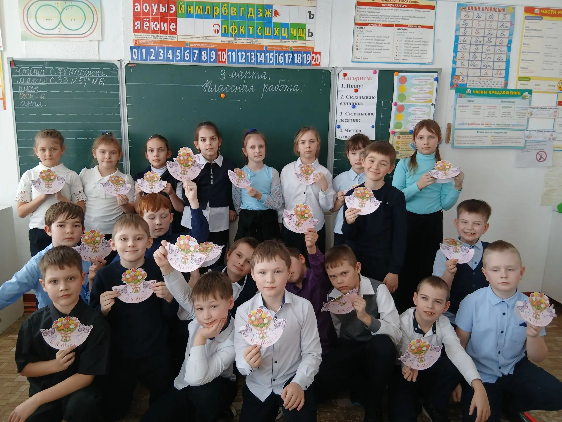 Обучающиеся 4-х классов Гимназии г.Тюкалинска приняли активное участие в занятии, посвящённом Международному женскому дню. Ребята изготовили поздравительные открытки для своих мам, бабушек и сестёр.