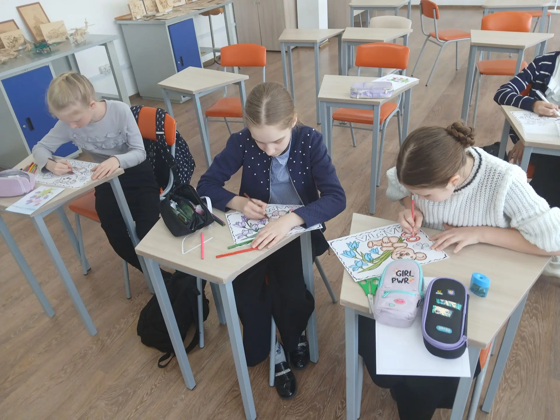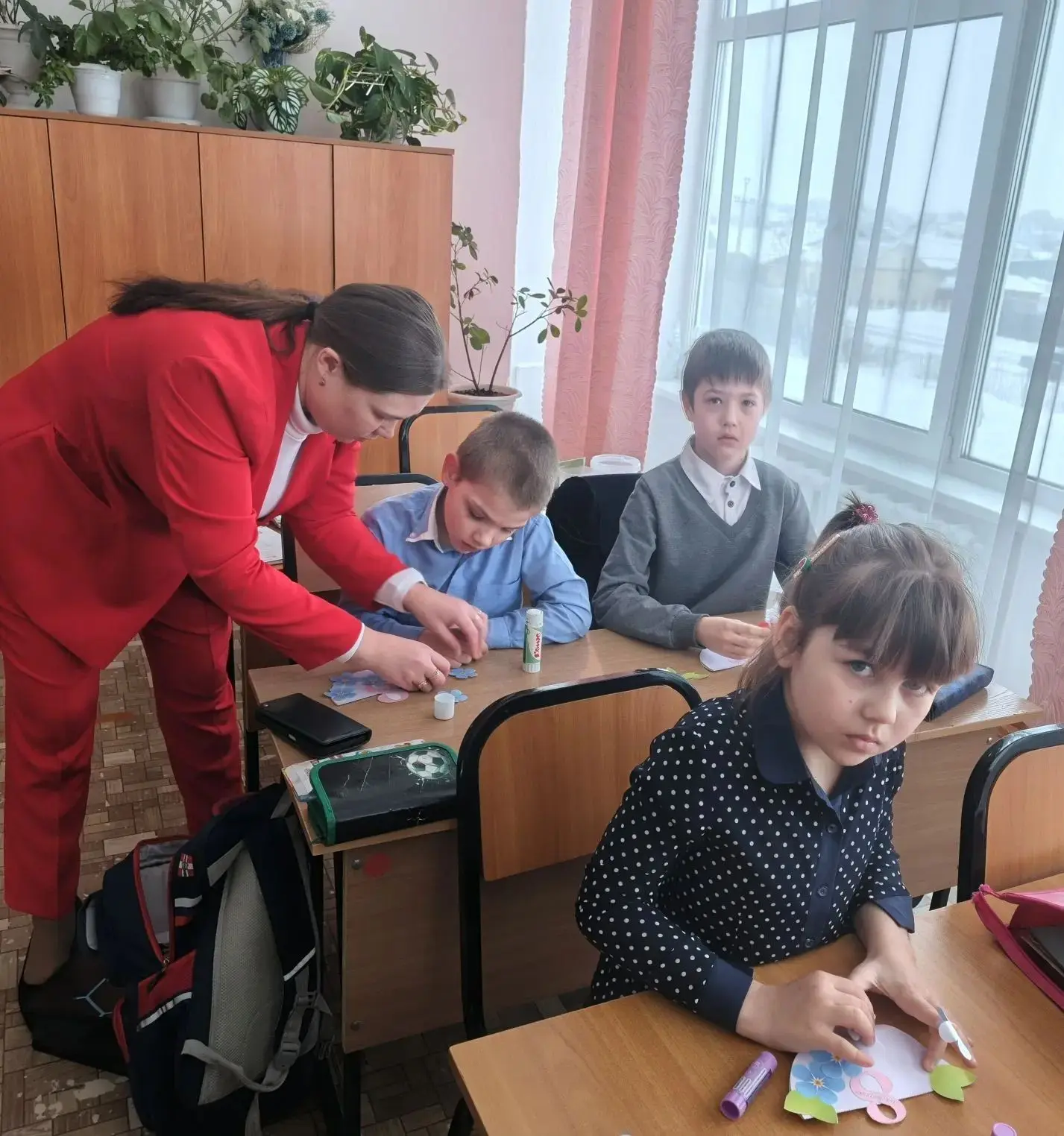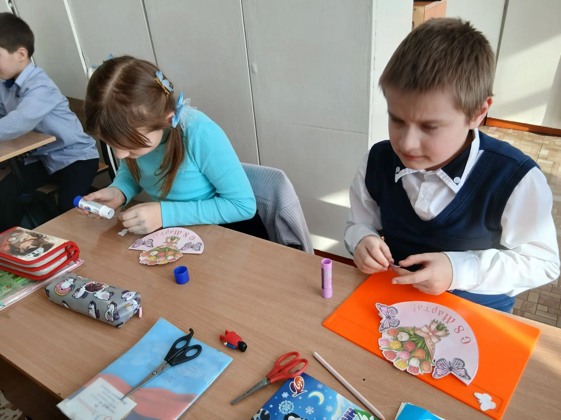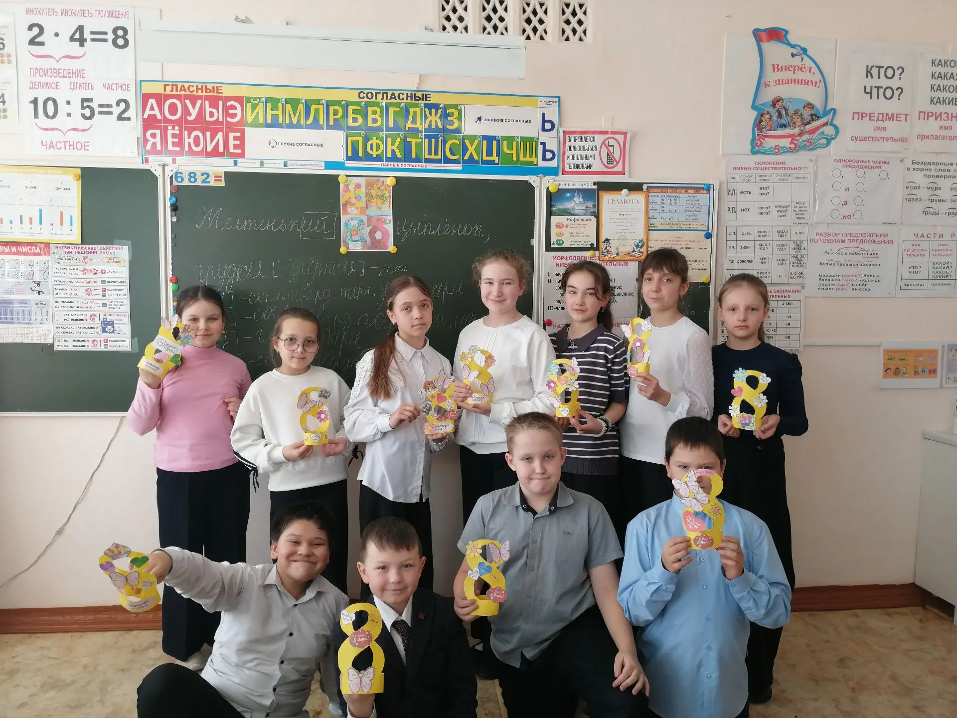 Обучающиеся 4-х классов Гимназии г.Тюкалинска приняли активное участие в занятии, посвящённом Международному женскому дню. Ребята изготовили поздравительные открытки для своих мам, бабушек и сестёр.