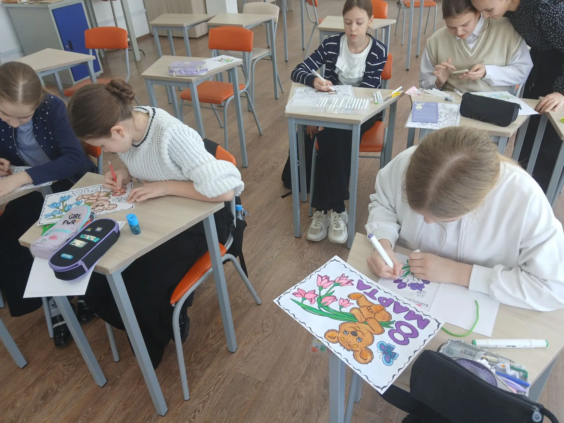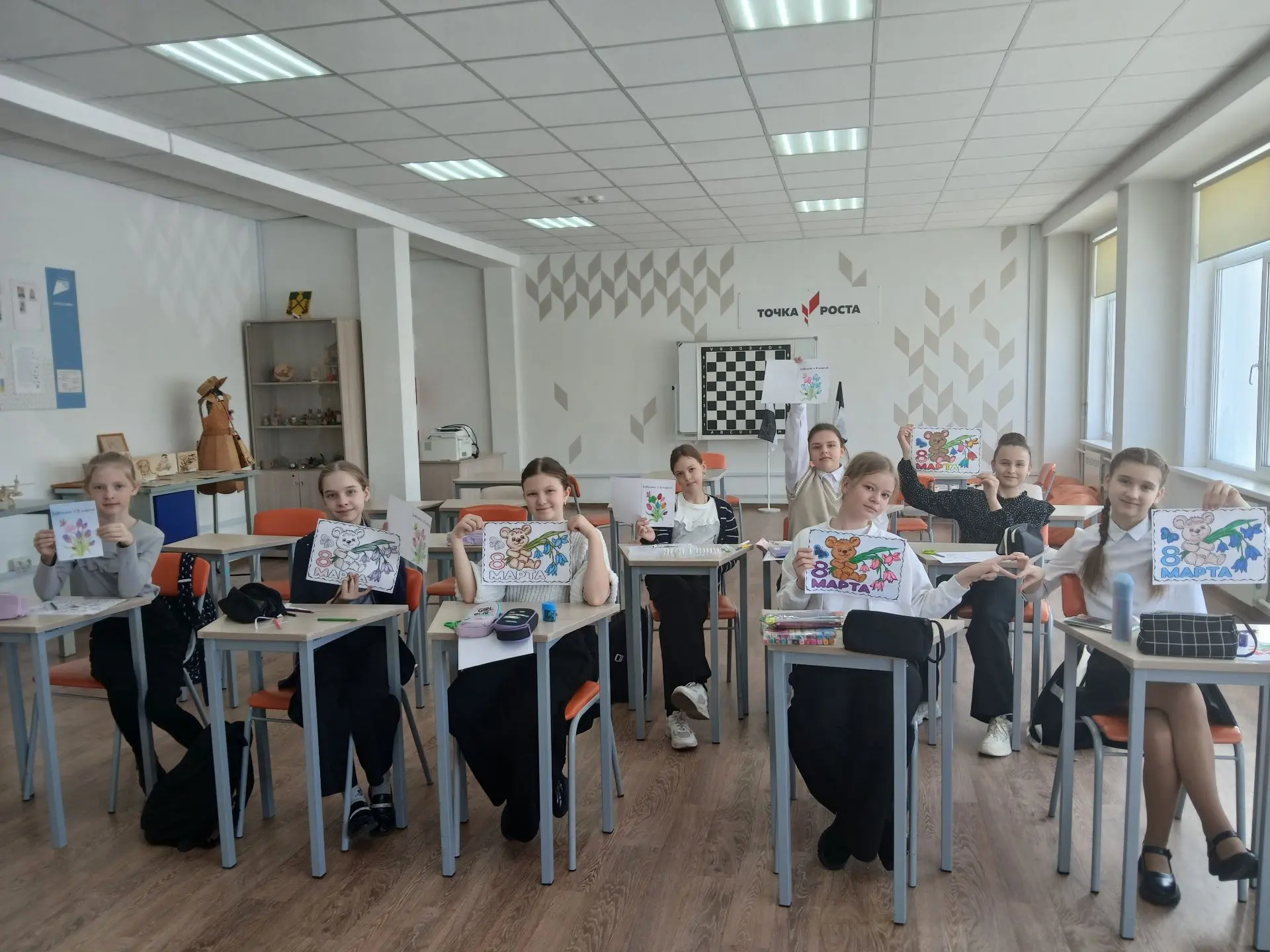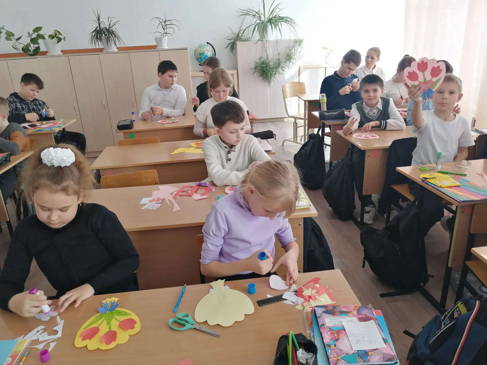 Сегодня в МОБУ Гимназии, ребята пятых классов вместе с педагогом дополнительного образования Линдеман Марией Сергеевной, изготавливали открытки к международному женскому дню.