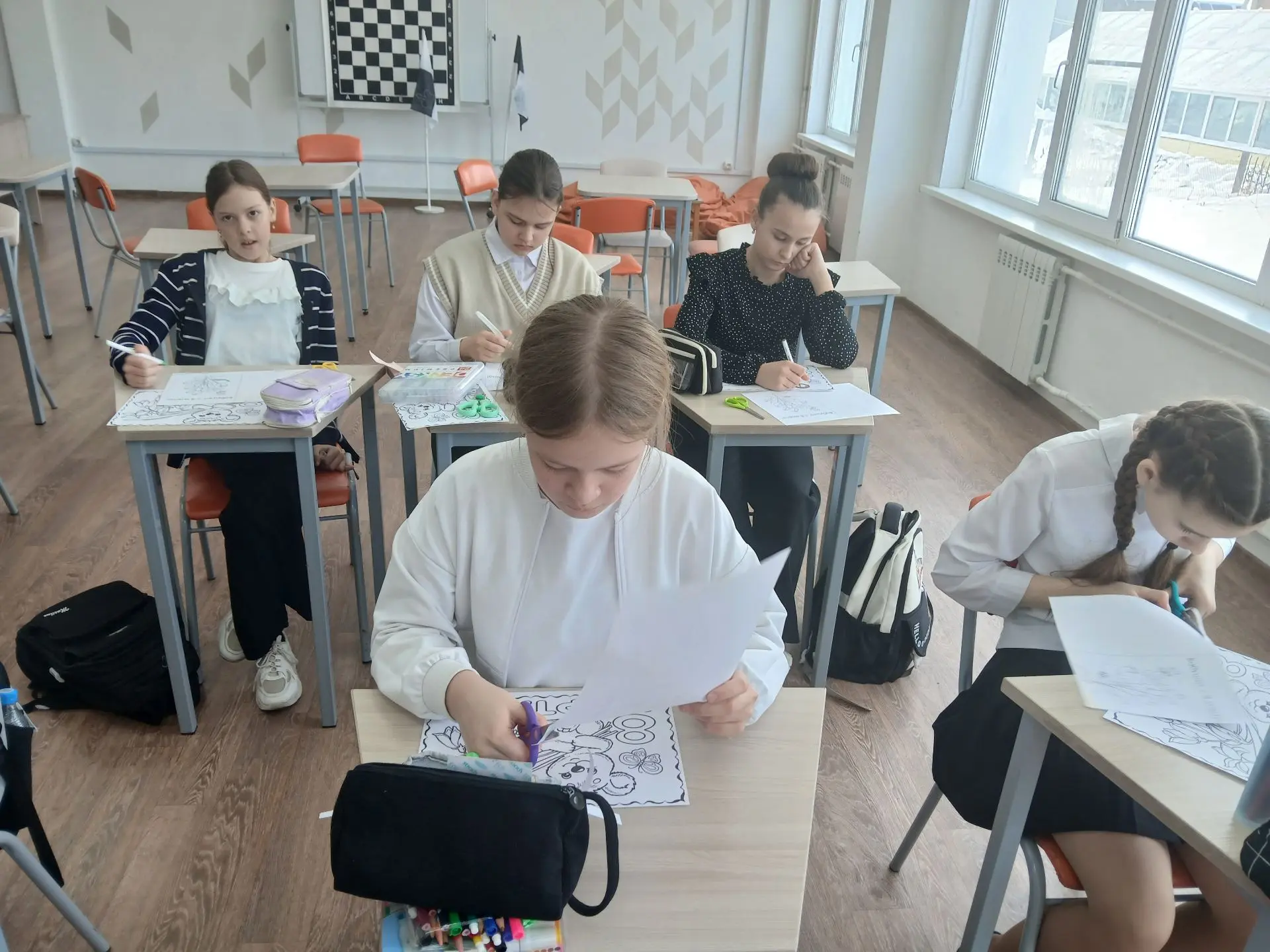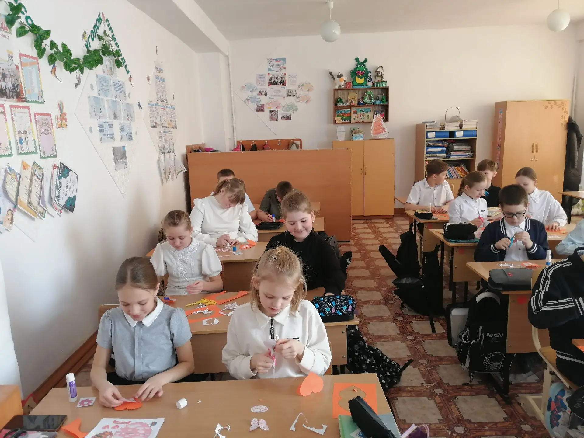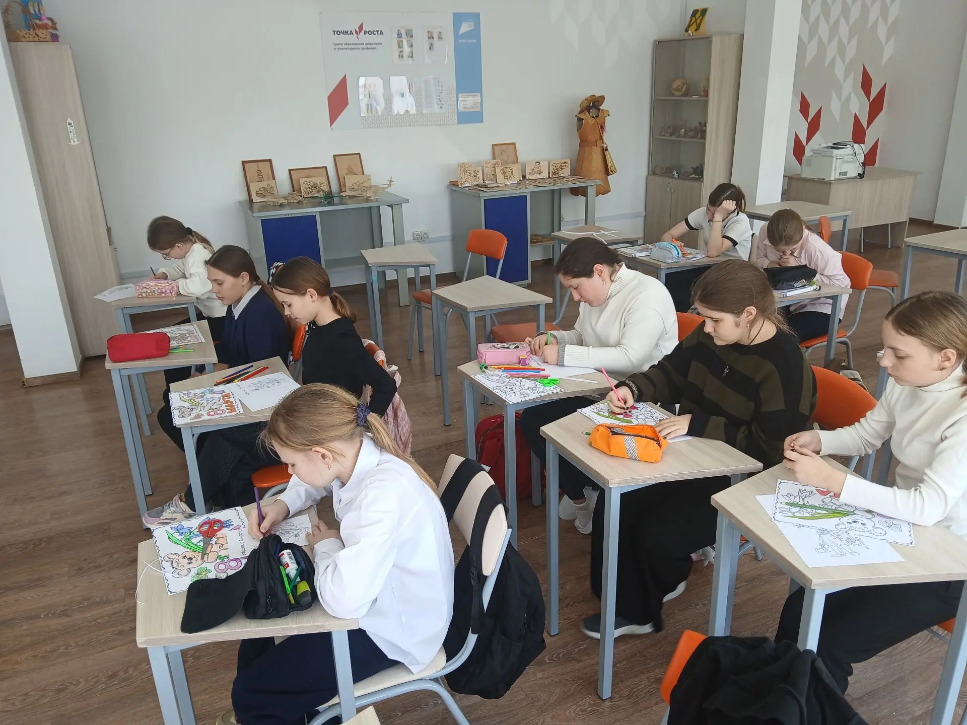 Сегодня в МОБУ Гимназии, ребята пятых классов вместе с педагогом дополнительного образования Линдеман Марией Сергеевной, изготавливали открытки к международному женскому дню.