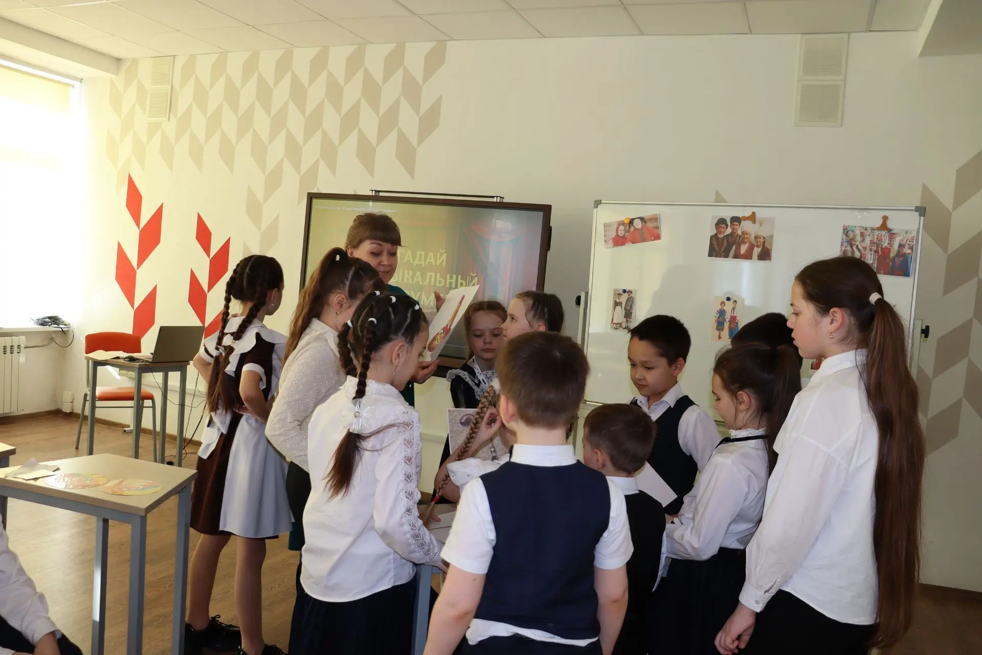 Станция «Музыкальная» объединила музыку и науку. Ребятам предстояло разгадать музыкальные загадки и сопоставить музыкальные инструменты с соответствующими народами России.