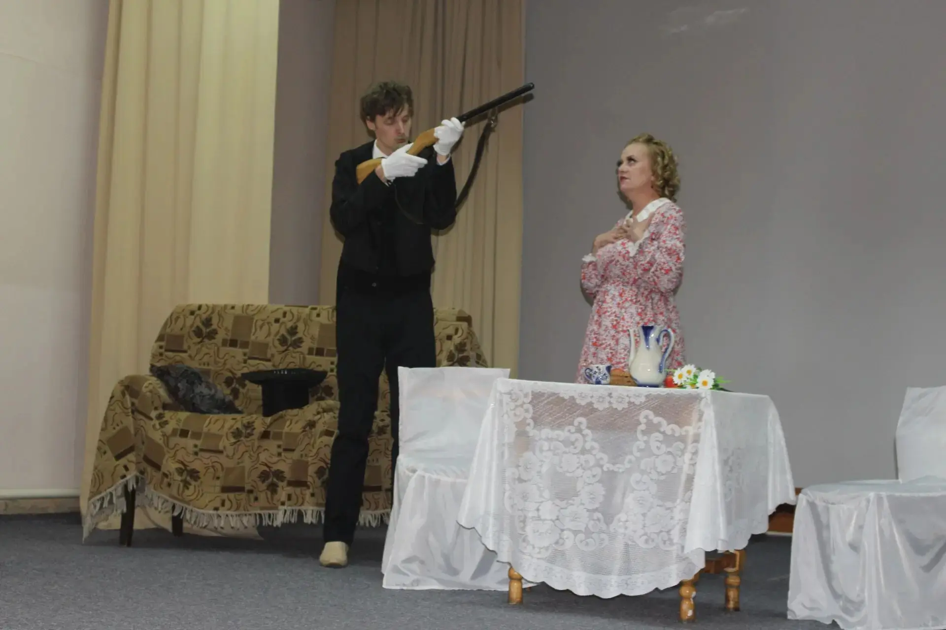 Режиссёром постановки выступила Татьяна Васильевна Пиджакова. Исполнители главных ролей – Дмитрий Захаров, Василий Мартыненко и Наталья Лопарёва – продемонстрировали высокий уровень мастерства.