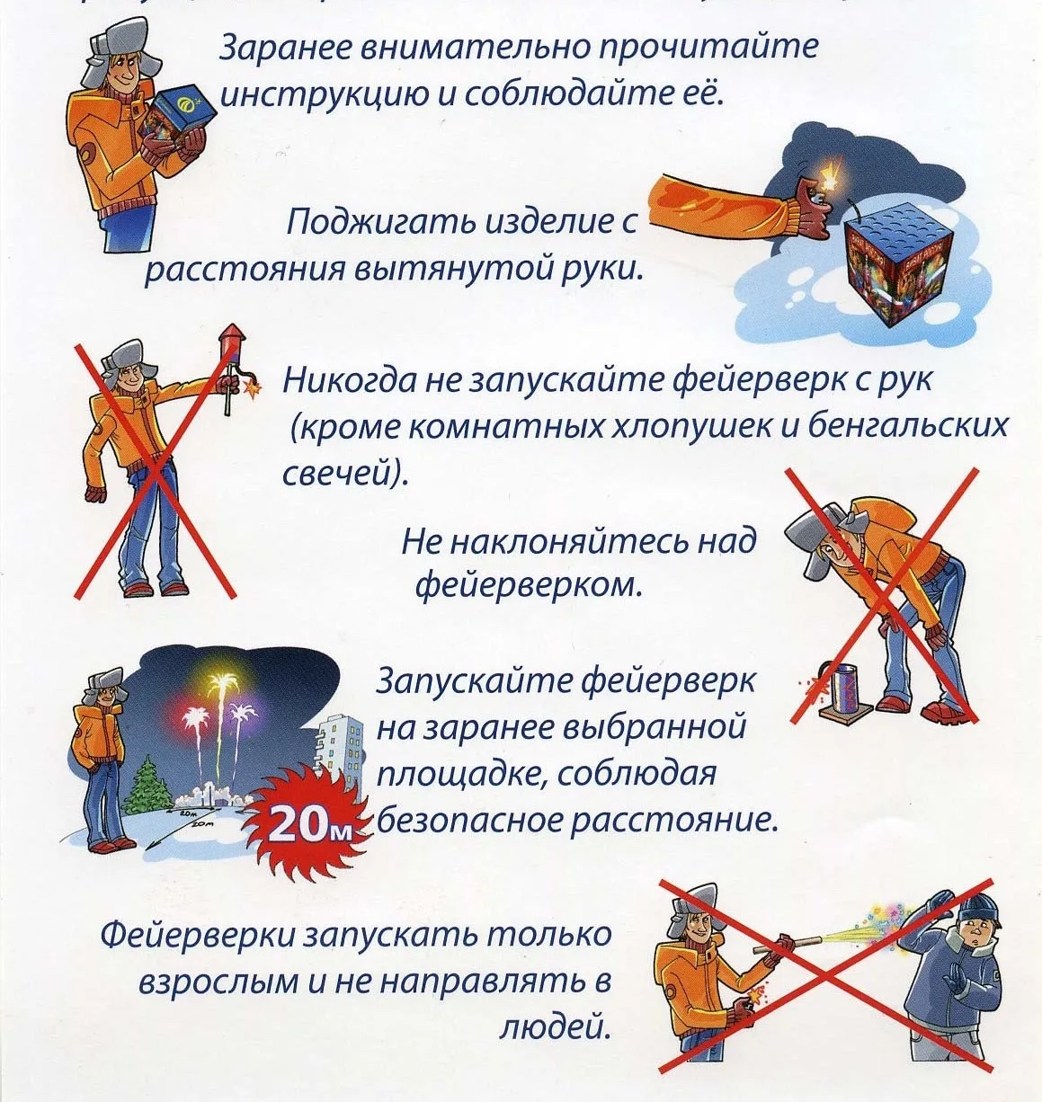 1. Строго запрещено использовать и брать в руки пиротехнические изделия лицам, моложе 18 лет без присутствия взрослых!