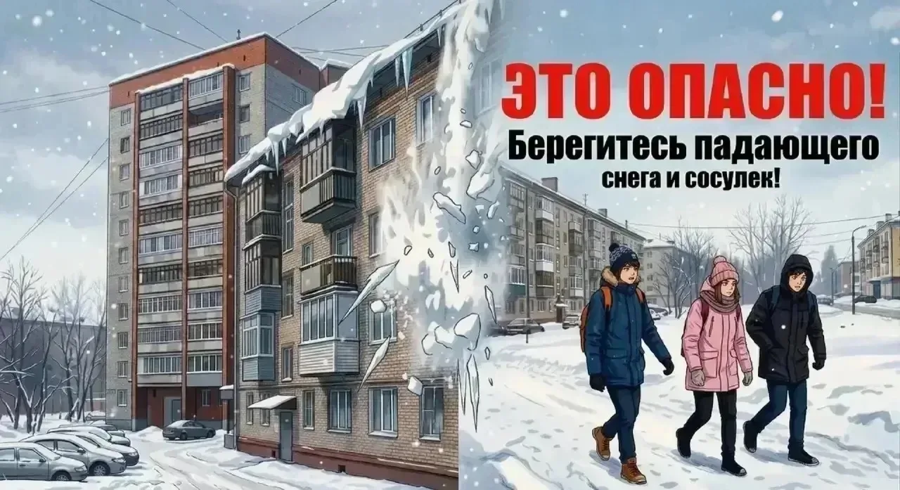 Снег на крышах и сосульки — это красиво, но опасно.