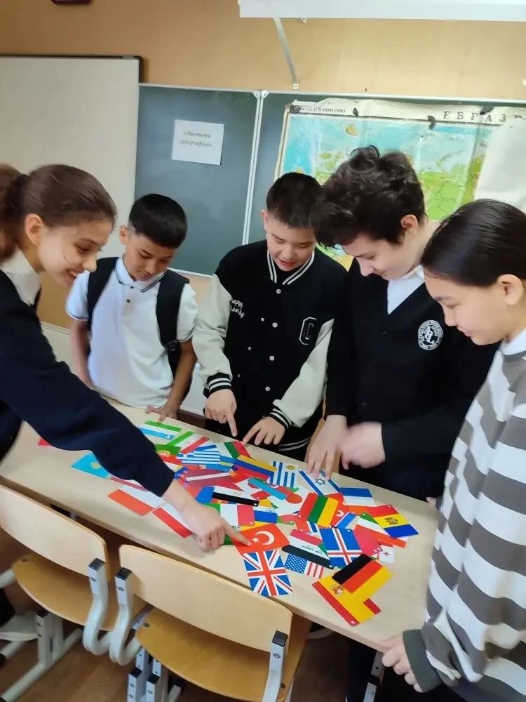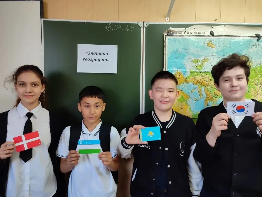 Сегодня, в 6б классе, в рамках недели Естественных наук, прошла игра "Знатоки географии", ребята по флагу определяли страну, столицу страны, её валюту и язык. Победили: Абдувохидов Абдуллох, Алагузова Александра и Чернов Александр.