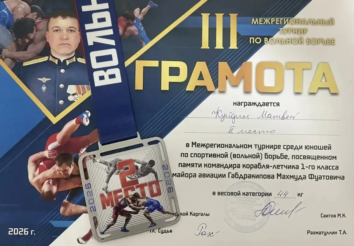 28 марта 2026 года, в с. Сакмара проходил Межрегиональный турнир среди юношей по спортивной (вольной) борьбе, посвящённый памяти командира корабля - лётчика 1 класса майора авиации Габдракипова Махмуда Фуатовича, где ученик 5 б класса Куйдин Матвей занял 2 место. Поздравляем Матвея с победой!