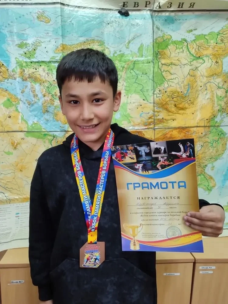 Абдувохидов Абдуллах, ученик 6б класса, занял 3 место на городских соревнованиях по вольной борьбе.Абдуллах, поздравляем с замечательным результатом и желаем дальнейших побед!