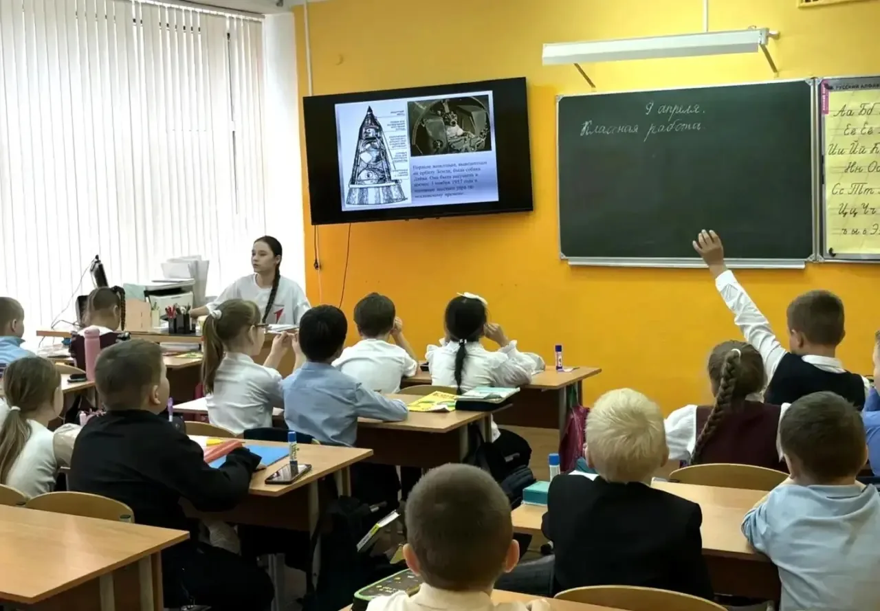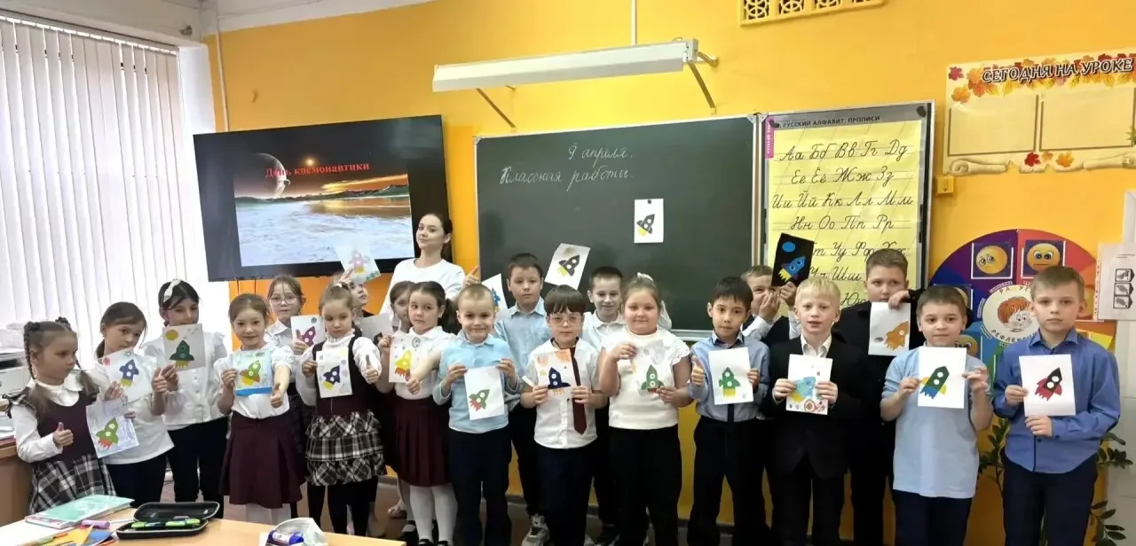 Сегодня в 1«А» классе прошло необычное занятие, посвященное Дню космонавтики. Его провела наставник-старшеклассник проекта «Орлята России» — Попова София ✨