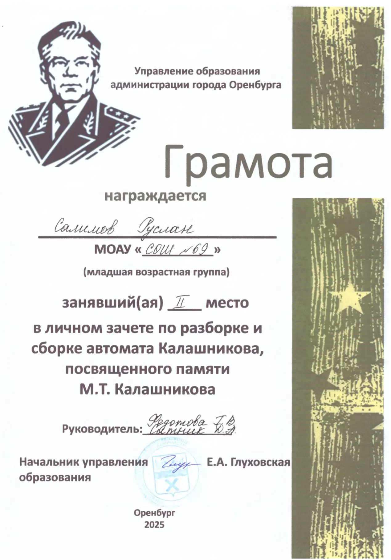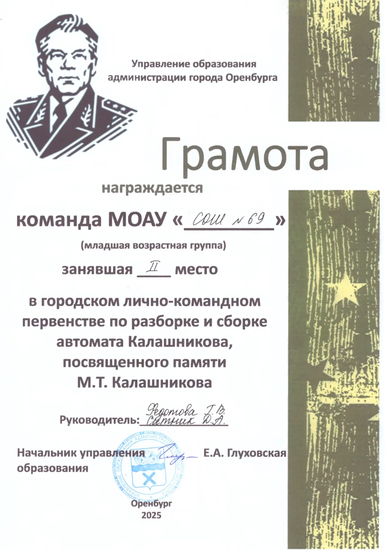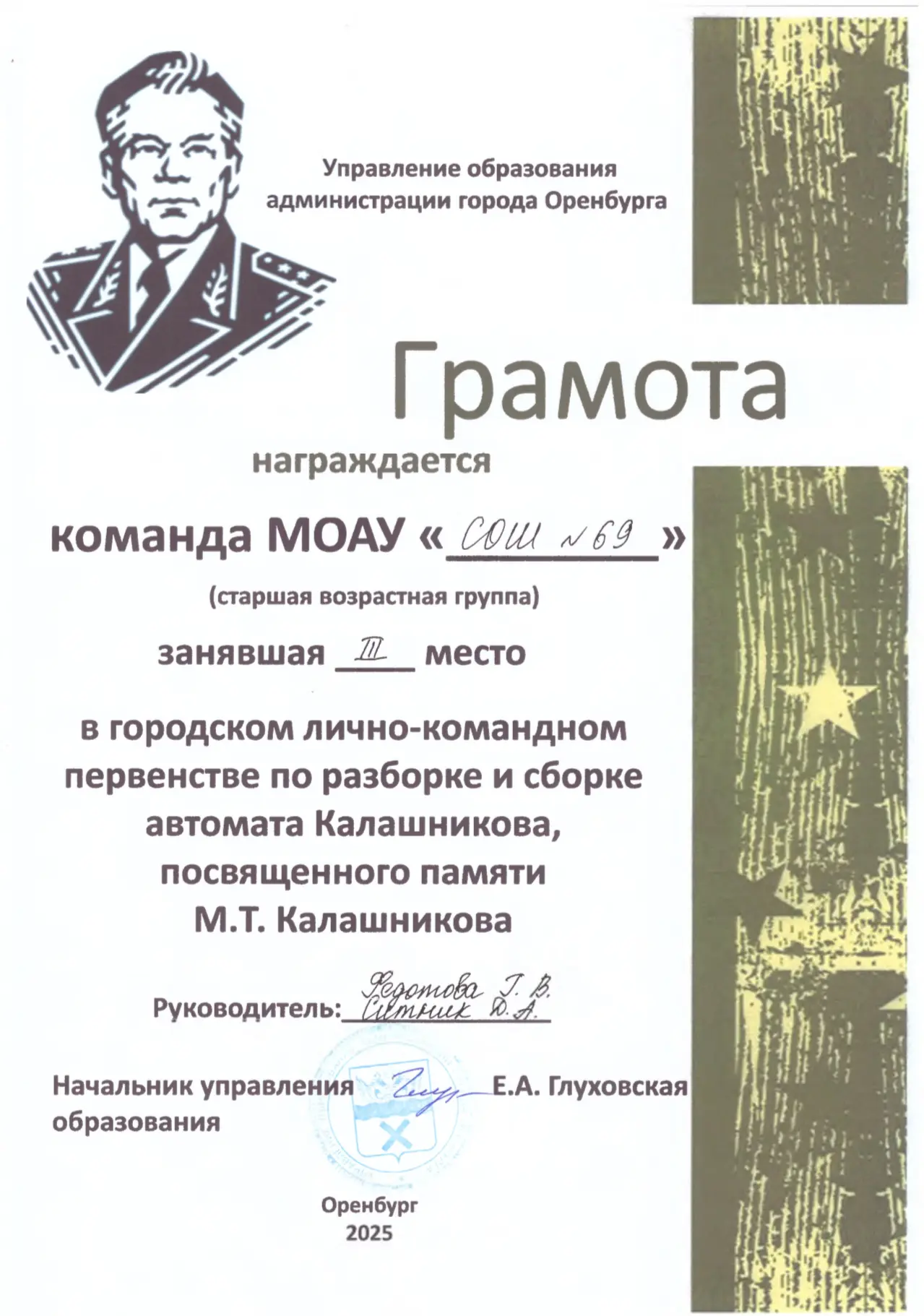 🏆Обучающиеся нашей школы стали победителями и призерами городского лично-командного первенства среди команд общеобразовательных организаций по разборке и сборке автомата Калашникова, посвященного памяти М.Т. Калашникова.