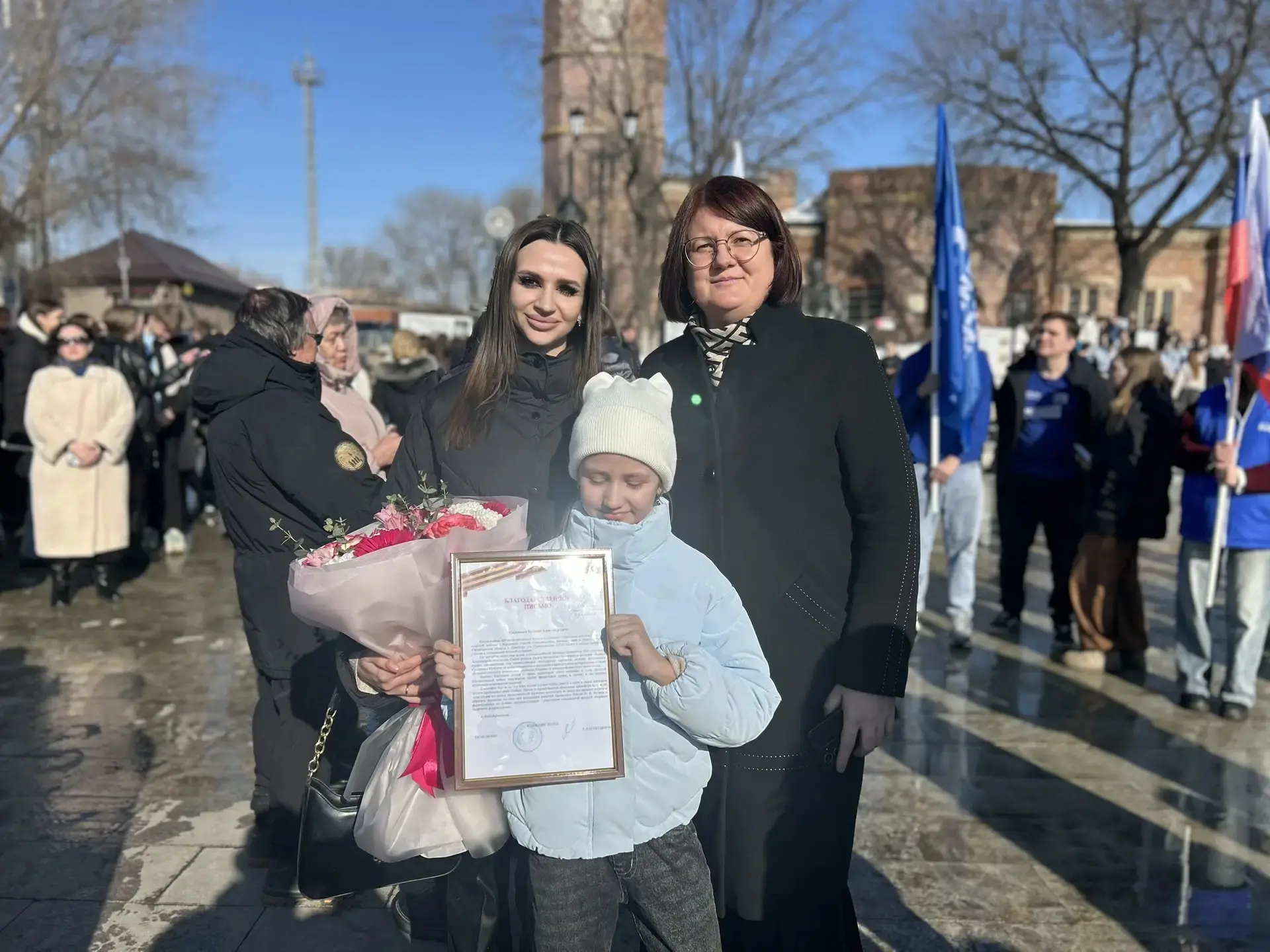 На митинге присутствовал Губернатор Оренбургской области Евгений Солнцев. И прямо на площади произошло событие, которое наполнило этот день особым смыслом для нашей школы.