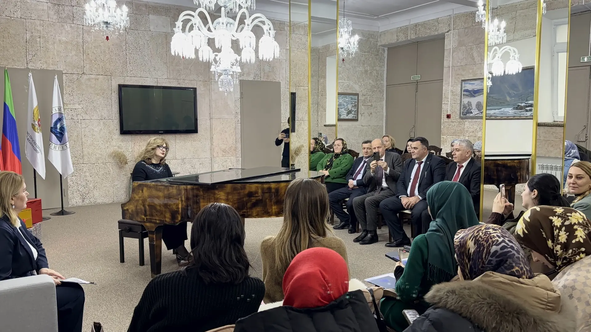 композиция в исполнении на рояле Патит Шахназаровой, заведующей кафедрой музыковедения, хорового дирижирования и методики музыкального образования.