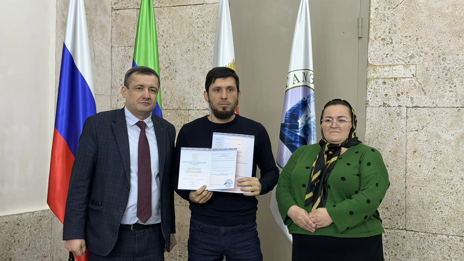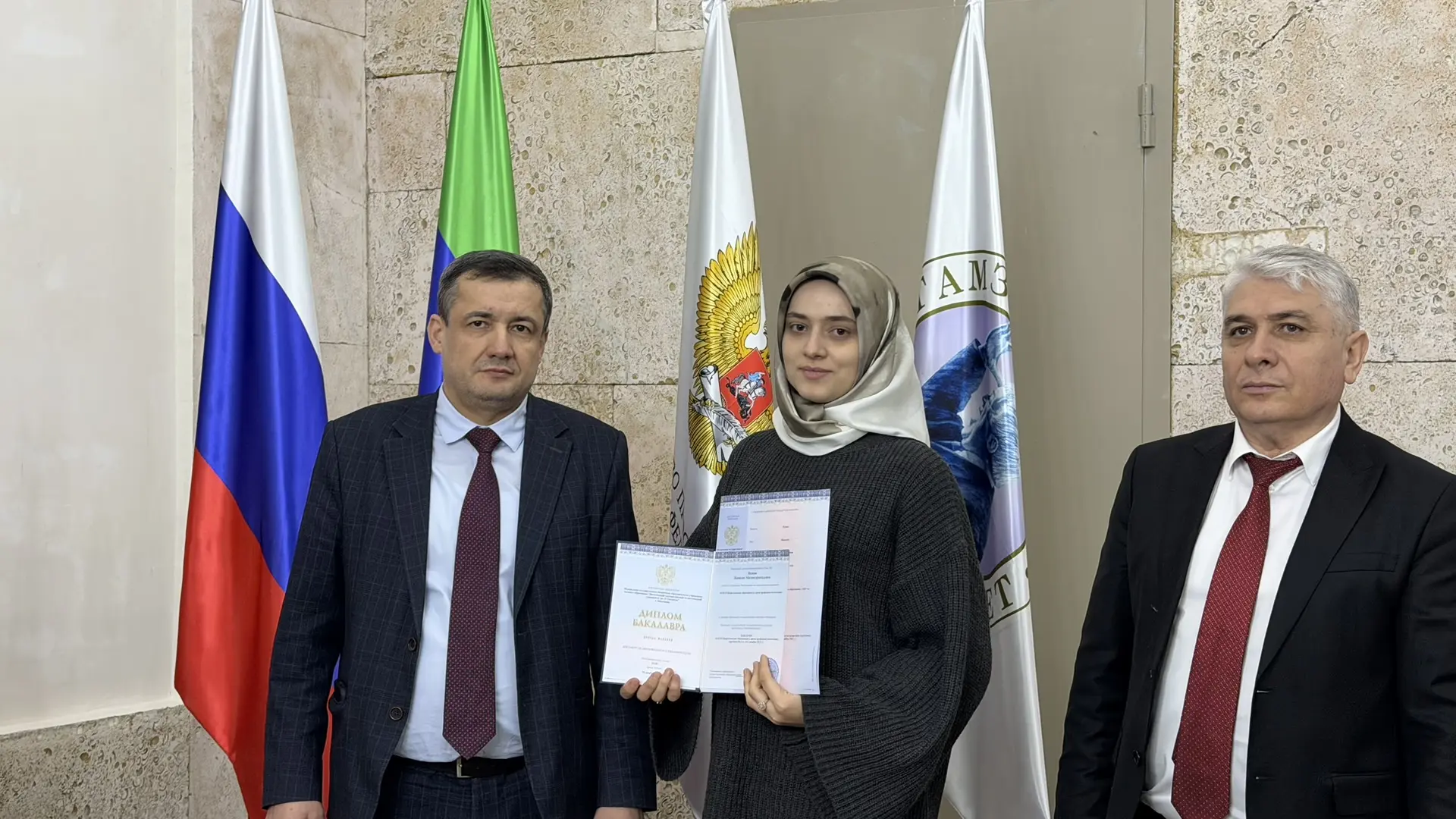 Перед вручением дипломов, выпускники произнесли торжественную клятву выпускника Гамзатовского университета.