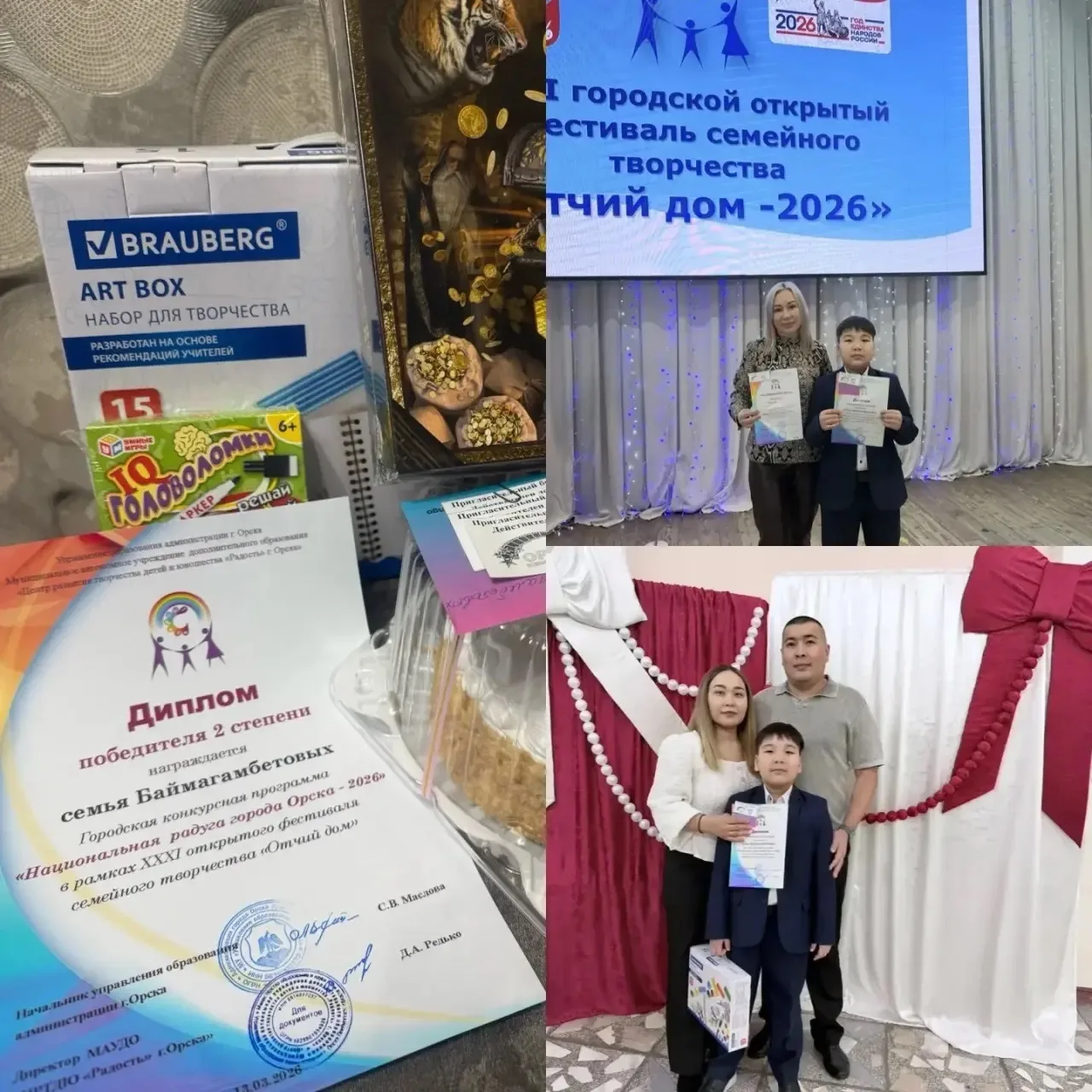 Занять 2 место в городском конкурсе «Национальная радуга - 2026» — это действительно впечатляющий результат! Участие в номинациях, связанных с национальными традициями, блюдами, творческими номерами и костюмами, свидетельствует о богатом культурном наследии и таланте семьи.