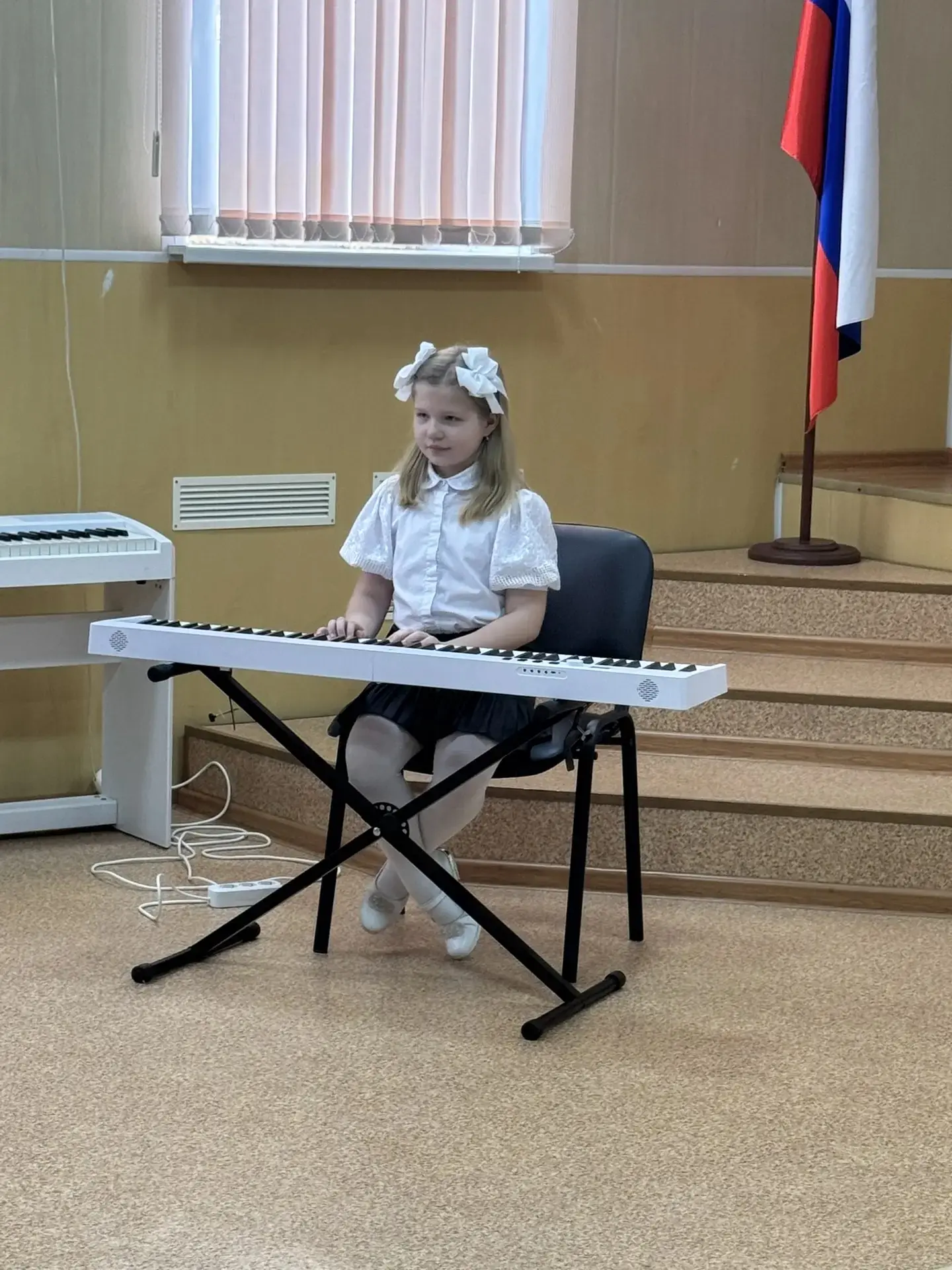 Особенно ярко сияли сегодня маленькие звёздочки начальных классов. Их звонкий смех и задорные глаза словно согревали сердца каждого зрителя. Маленькие певцы покоряли слушателей нежными голосами, будто переливающимися хрустальными колокольчиками. Танцоры кружились в волшебном ритме, превращаясь в маленьких фей и эльфов, чьи движения казались невесомыми и воздушными. Юные музыканты виртуозно играли мелодии, заставляя слушателя мысленно переноситься в мир сказочных грёз.