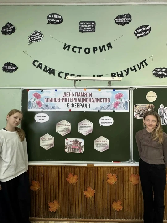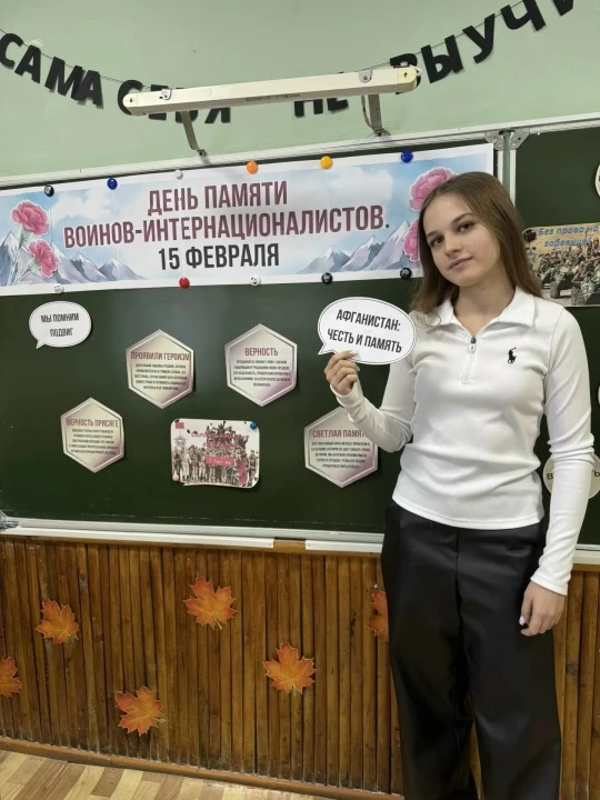 В этот памятный день учитель истории Недорезова А. Е. провела в школе урок мужества под названием «Равнение на подвиг». Мероприятие было призвано донести до подрастающего поколения всю важность сохранения памяти о героях, чьи имена золотыми буквами вписаны в историю. Урок проходил в атмосфере торжественности и сосредоточенности, ведь речь шла о подвигах, совершенных вдали от родной земли.