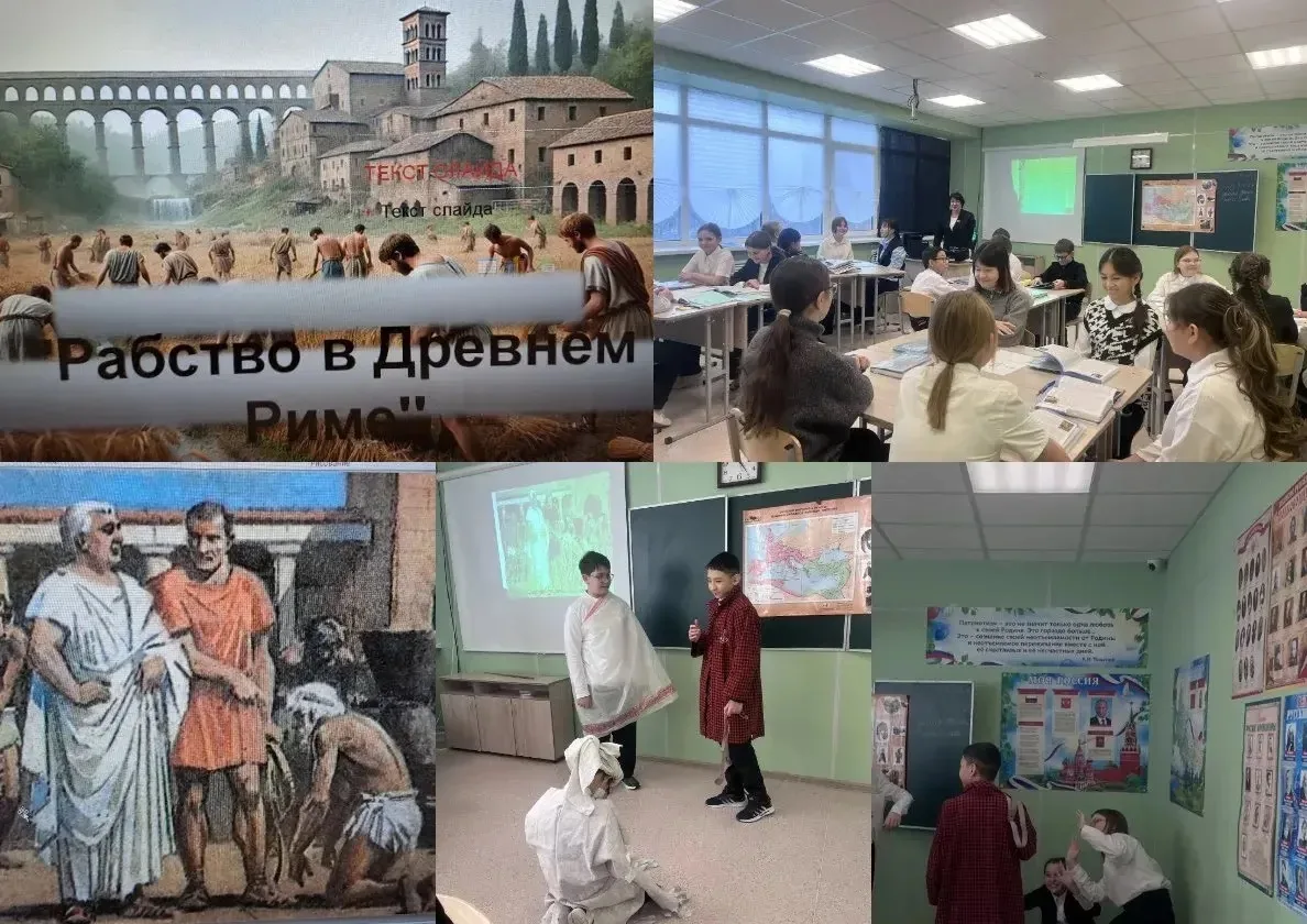 Главный вопрос занятия звучал так: «Какую роль играли рабы в Древнем Риме?» Ученики не получили готовый ответ — им предстояло найти его самостоятельно!