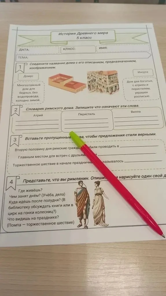 🔎 Исследовали жилые строения Древнего Рима: ребята познакомились с особенностями римской архитектуры — от скромных инсул до роскошных домусов и загородных вилл.