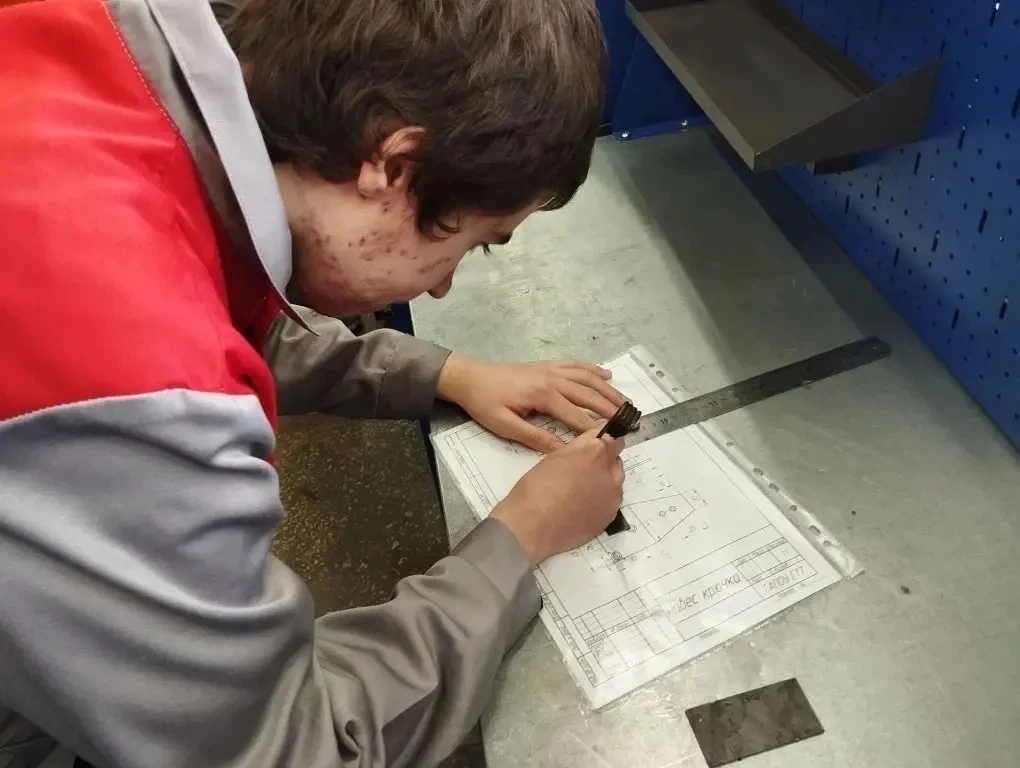 ✍️ В завершение юные слесари поставили маркировку на заготовках — выбили первые буквы своих ФИО. Это поможет продолжить работу на следующем занятии без путаницы!