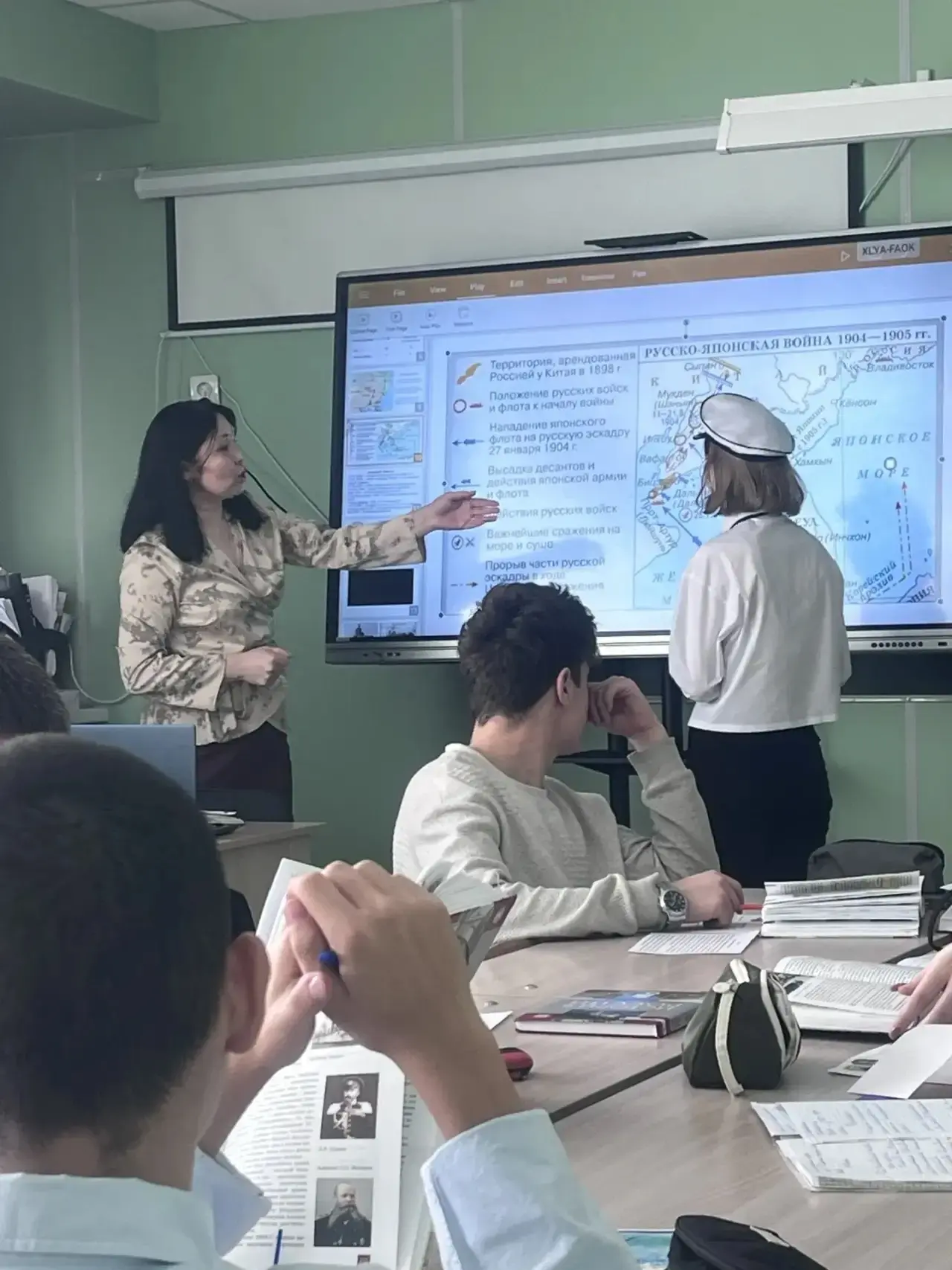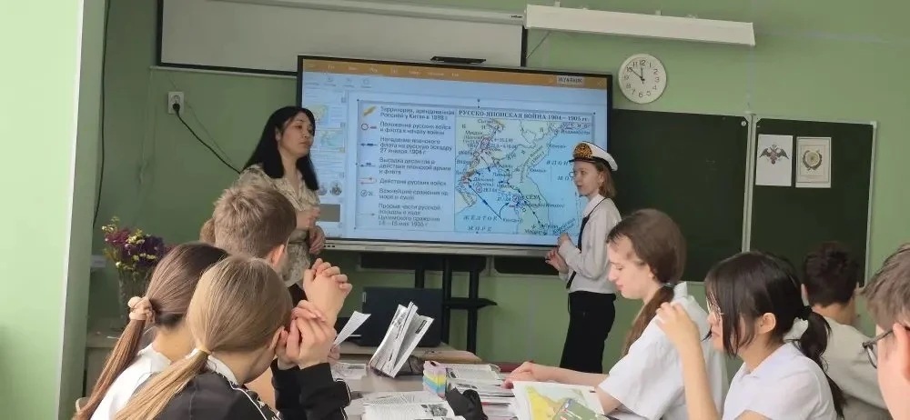 На уроке истории в 9 «В» классе мы погрузились в события Русско‑японской войны 1904–1905 гг. под руководством учителя Дюсембаевой Ботагоз Сериковны!