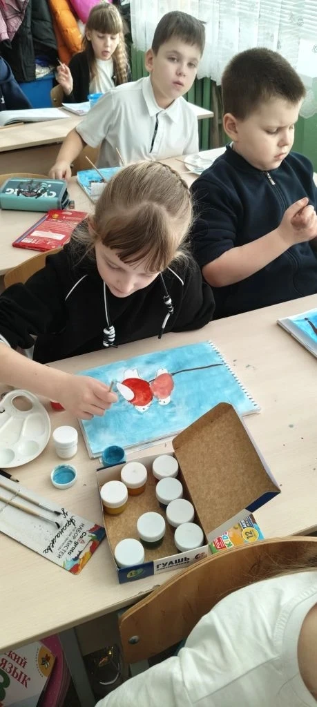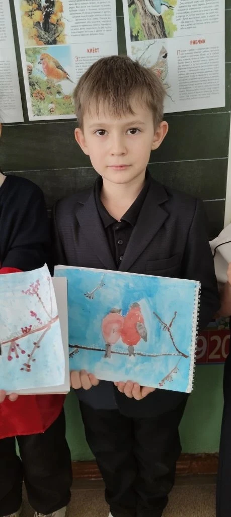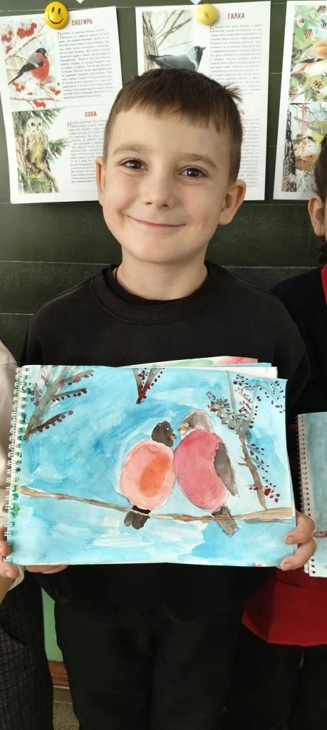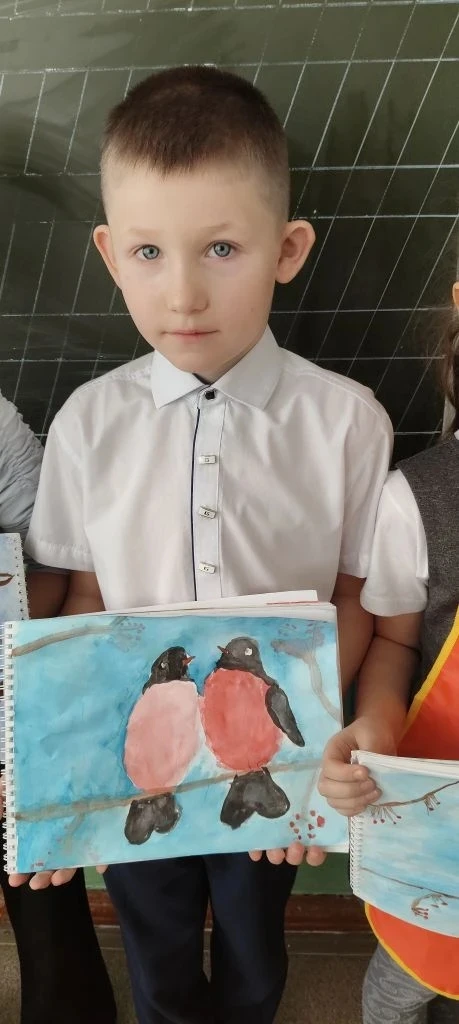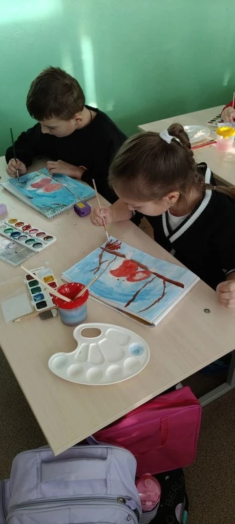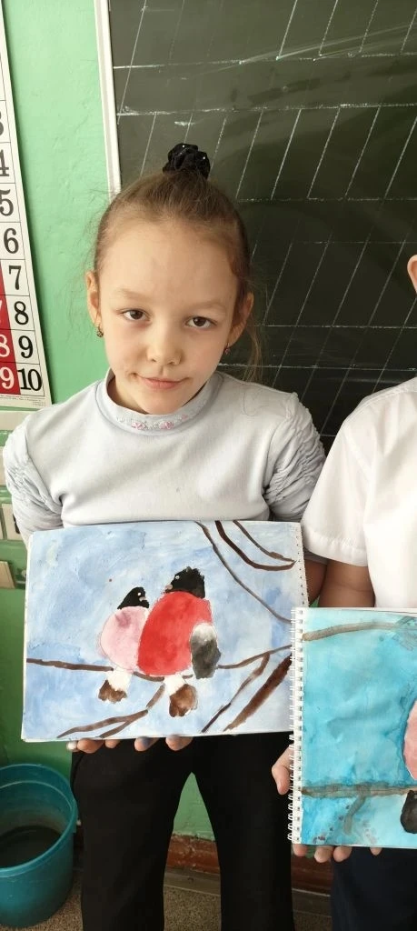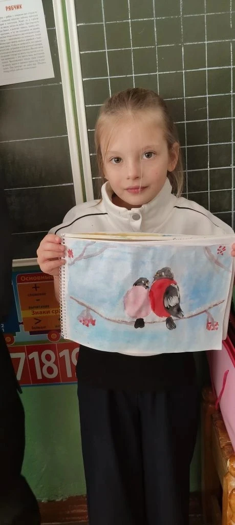 Нарисовали снегирей . Яркие красногрудые снегири — настоящий символ русской зимы.