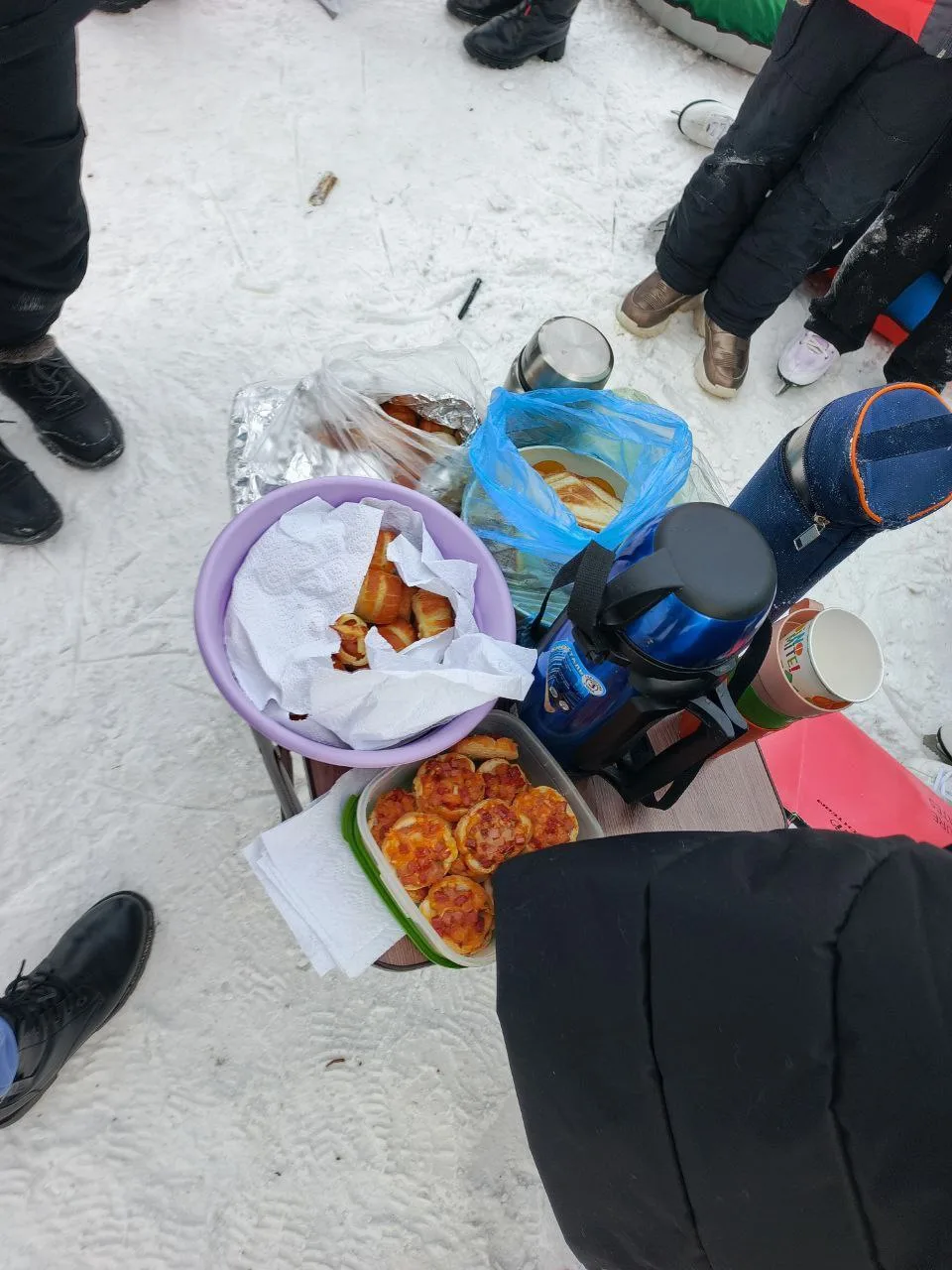 ❄️А после активных развлечений всех ждал тёплый приём: горячий чай с печеньем и бутербродами. За чашкой чая делились впечатлениями: кто‑то хвастался самым длинным спуском, кто‑то — самым эффектным спуском.