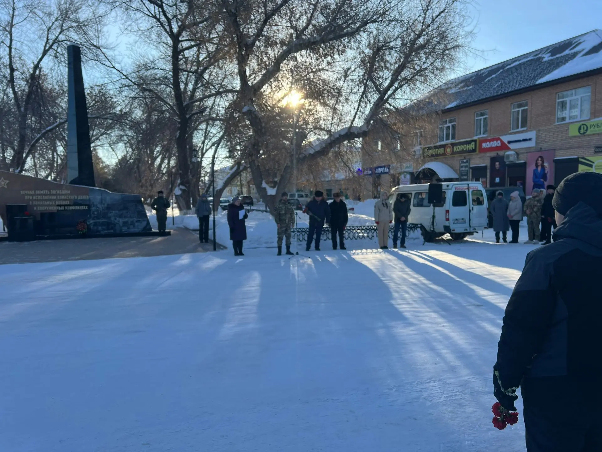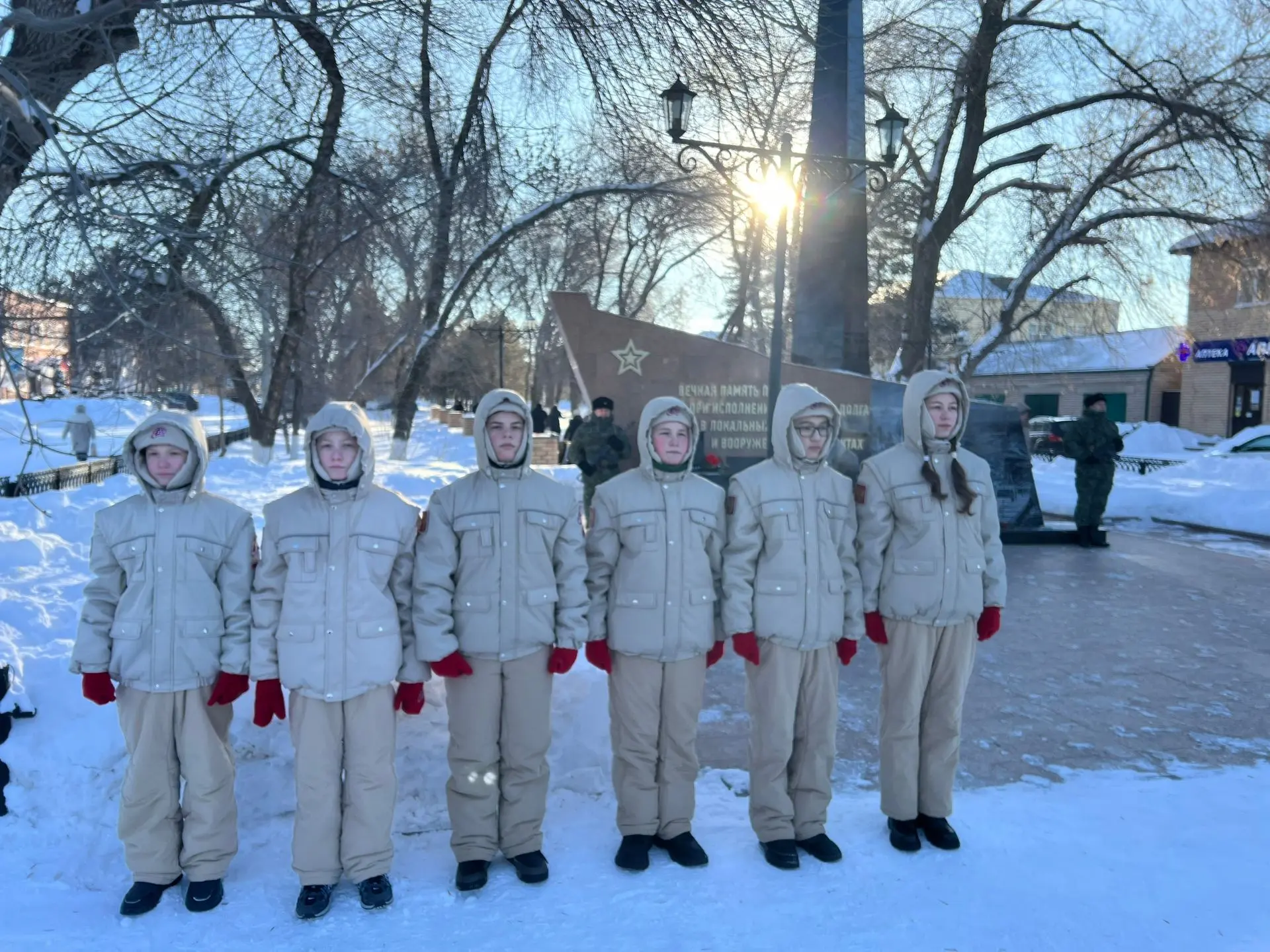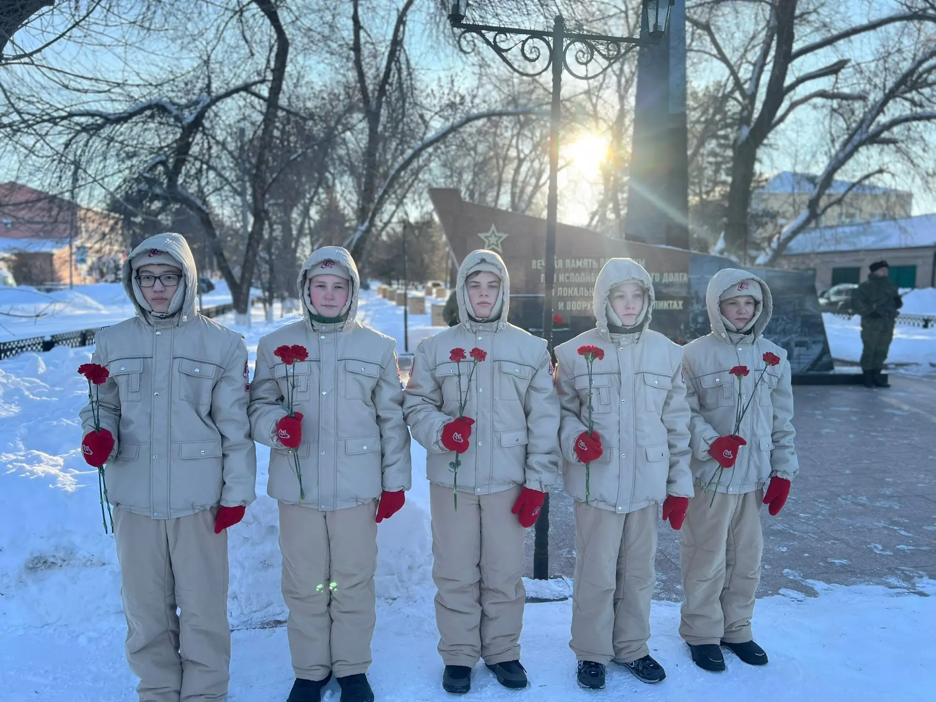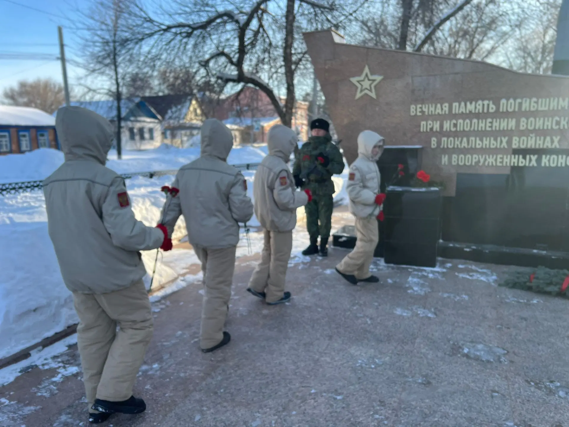 Вместе с ним учащиеся возложили цветы к памятникам солдатам, павшим в локальных конфликтах, выполняя интернациональный долг в Афганистане и Сирии, отдав честь памяти героев.