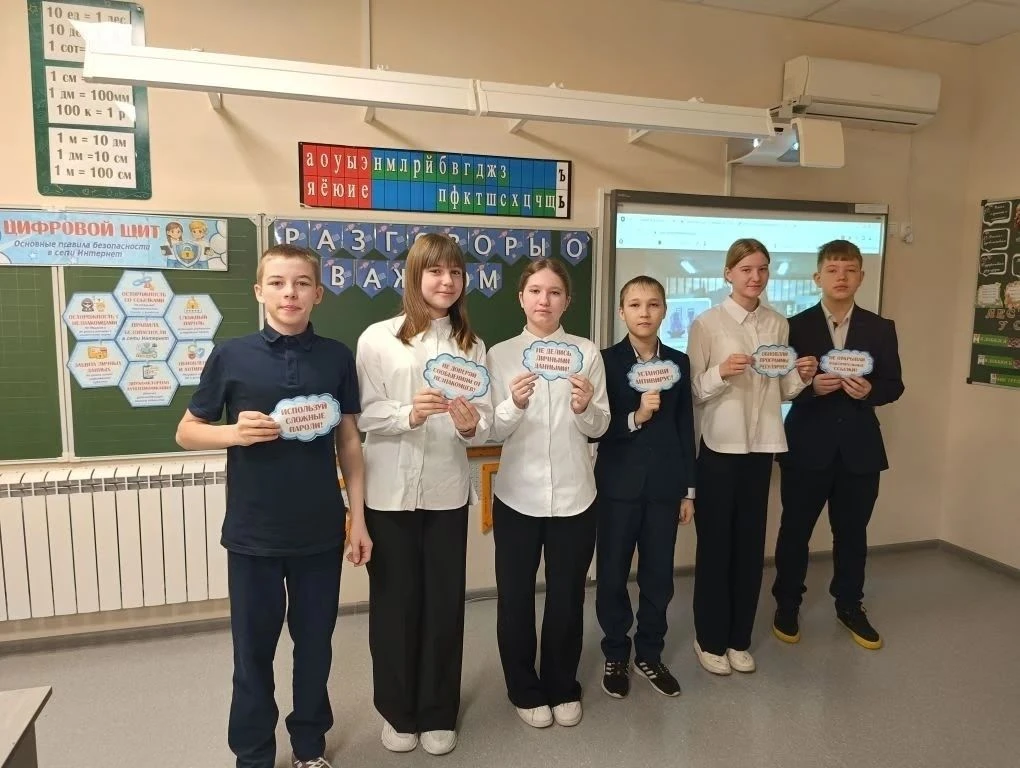 Сегодня в рамках цикла внеурочных занятий «Разговоры о важном» прошло очередное мероприятие. Тема встречи — «Цифровой щит: основные правила безопасности в интернете». В современном мире интернет стал важной частью нашей жизни, помогая учиться, общаться и отдыхать. Однако виртуальное пространство несет в себе множество угроз, включая мошенничество и кибербуллинг.