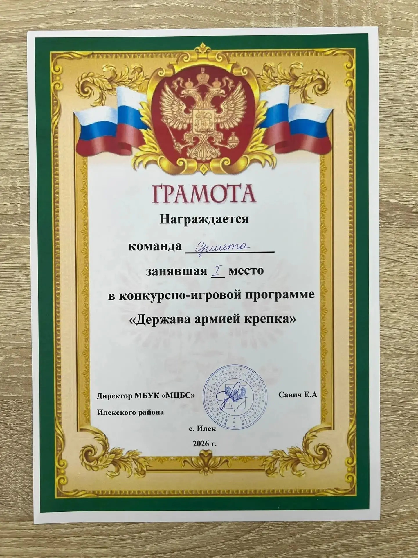 Поздравляем команду и руководителя В. В. Царюк с заслуженной победой и желаем новых спортивных достижений!