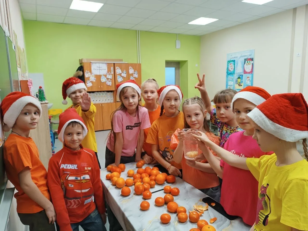 На каникулах во 2 Б классе прошел мандариновый день. Дети окунулись в захватывающий мир истории, узнав о том, откуда пришли мандарины и почему это фрукт стал символом зимних праздников. Ребята выяснили, почему мандарин не тонет, и как это связано с его уникальной структурой.