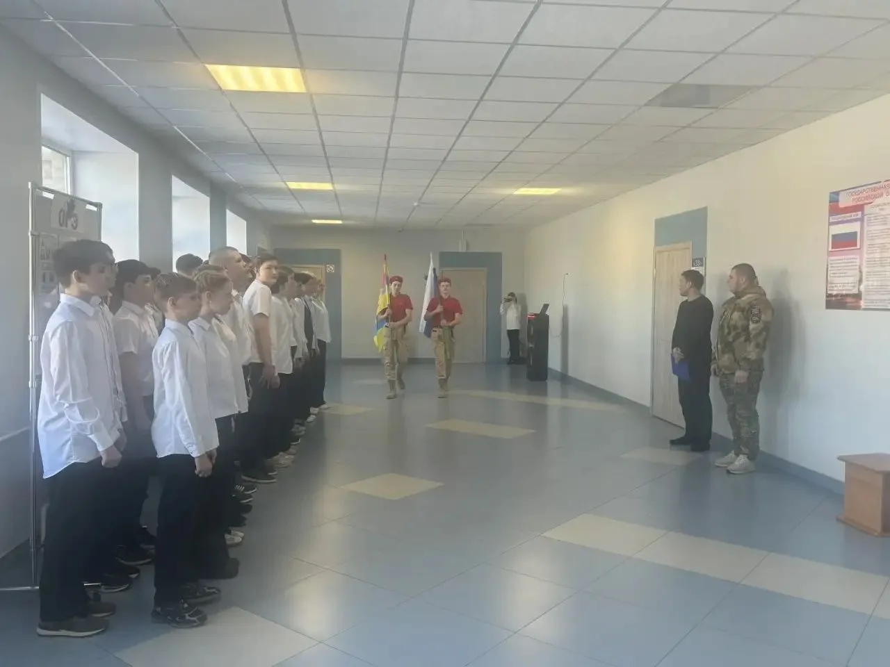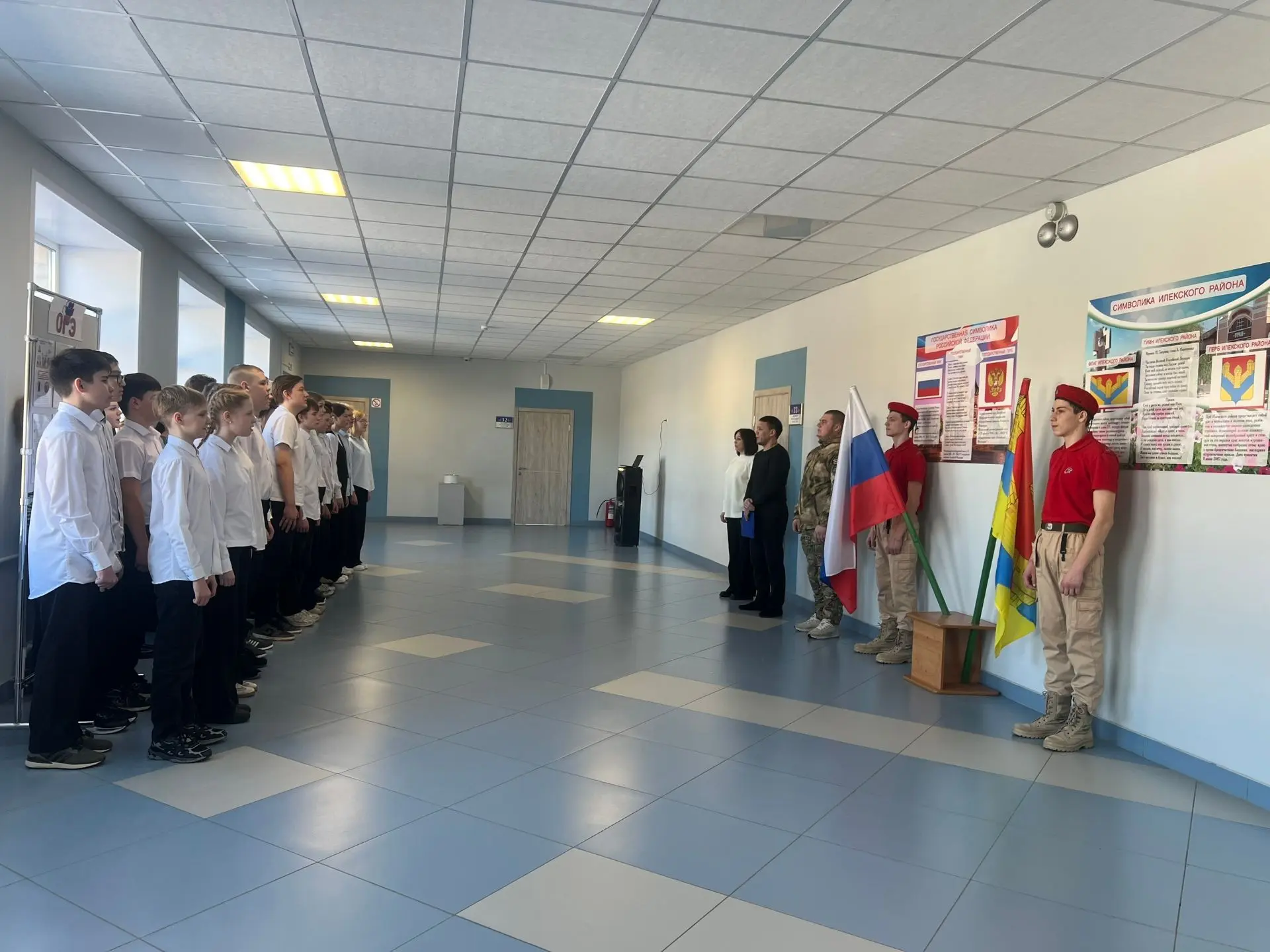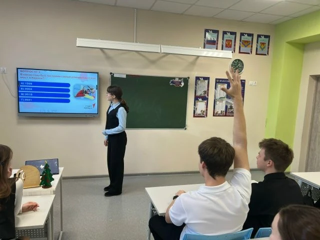 Утро понедельника, 16 февраля 2026 года, в школе началось с торжественной линейки, выноса флага и исполнения гимна России. Затем прошел урок «Разговоры о важном» на тему «Герой из соседнего двора». Мероприятие было посвящено Дню защитника Отечества и направлено на то, чтобы школьники поняли ценность воинского долга и гражданской доблести.