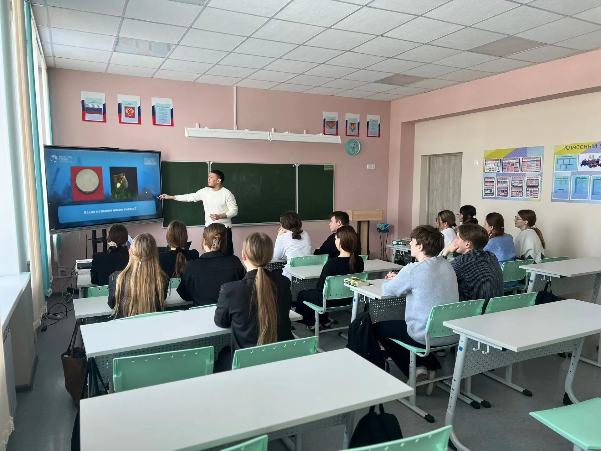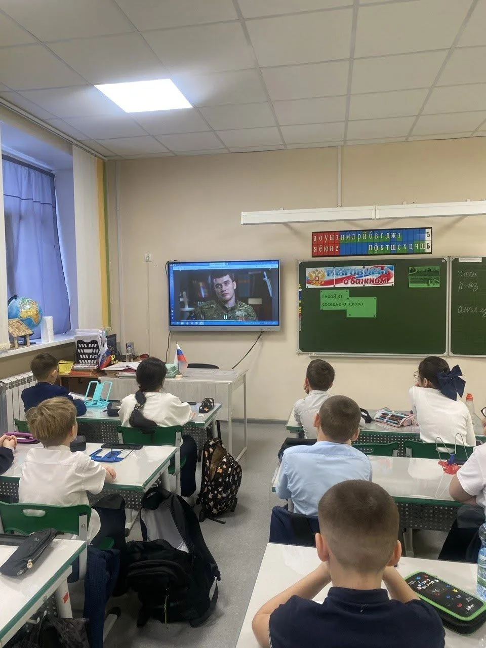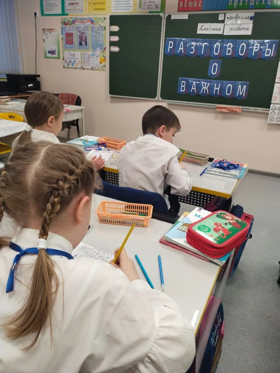 Утро понедельника, 16 февраля 2026 года, в школе началось с торжественной линейки, выноса флага и исполнения гимна России. Затем прошел урок «Разговоры о важном» на тему «Герой из соседнего двора». Мероприятие было посвящено Дню защитника Отечества и направлено на то, чтобы школьники поняли ценность воинского долга и гражданской доблести.