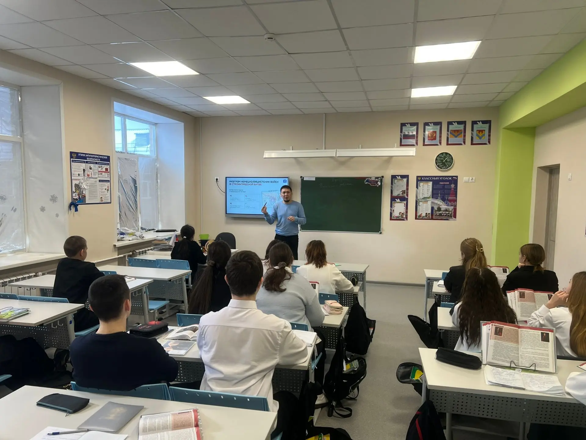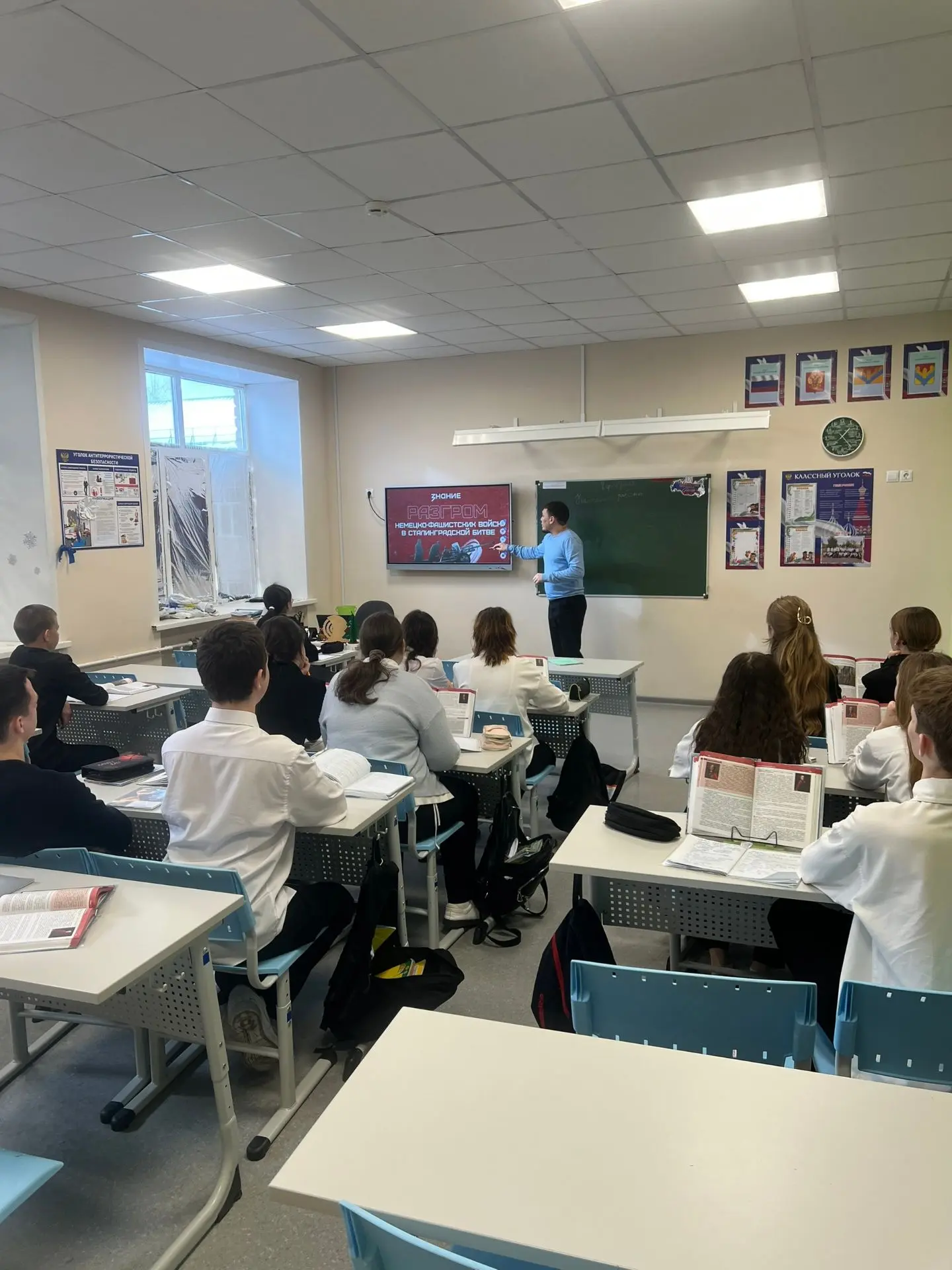 Сегодня, 2 февраля, в нашей школе состоялась патриотическая акция «Пост № 1», посвящённая Дню разгрома немецко‑фашистских войск в Сталинградской битве (1943 г.).