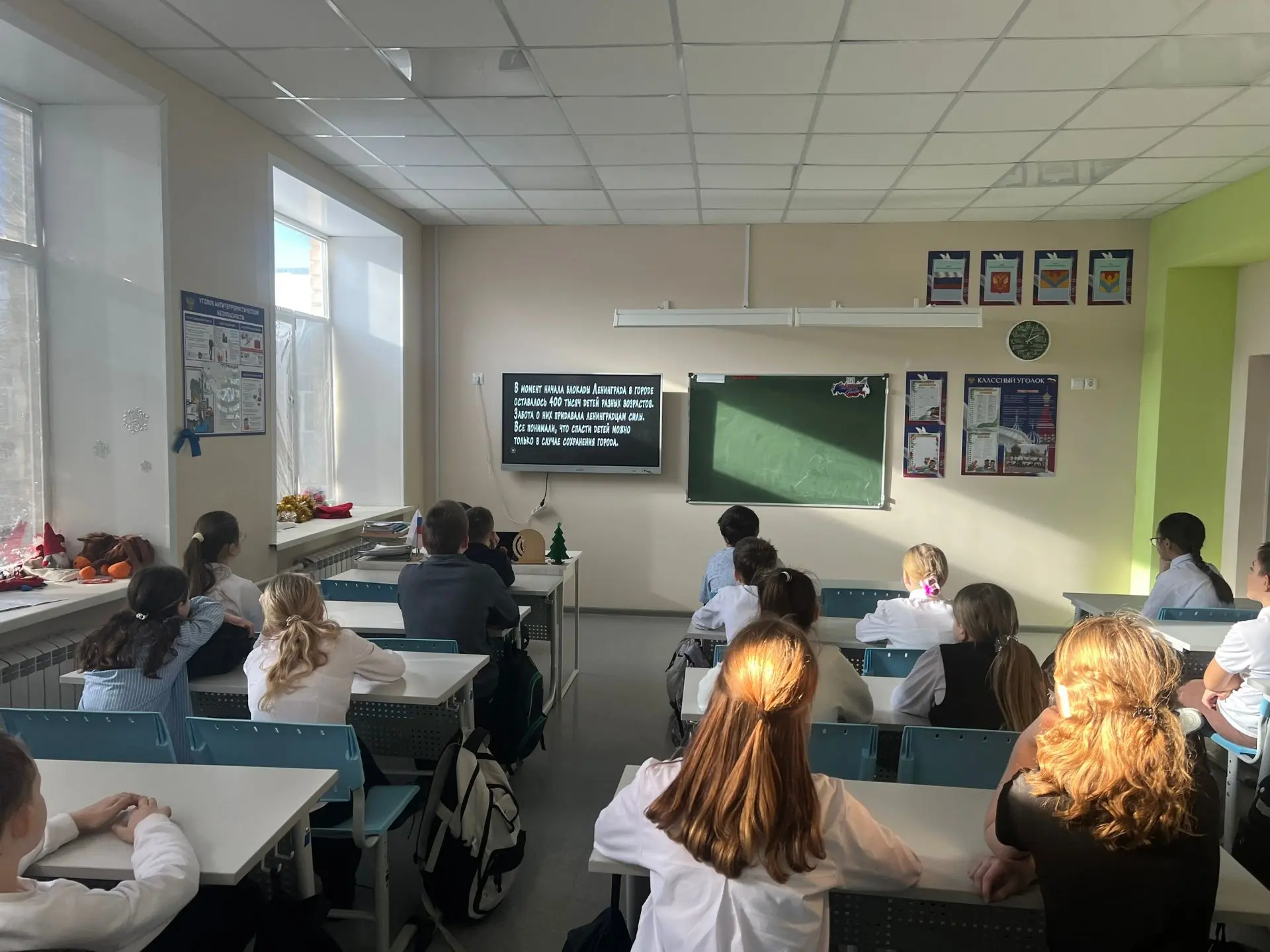 В 1-В и 4-Б классах прошло мероприятие, посвящённое блокаде Ленинграда. Ученики вспомнили, что 27 января 1944 года город был освобождён. Классный руководитель рассказала, как жили люди в те тяжёлые годы: как не хватало еды и топлива, как Ладожское озеро было единственной связью с внешним миром. Также дети узнали о Тане Савичевой, которая до блокады была обычным ребёнком, но её жизнь оборвалась в страшные годы войны.