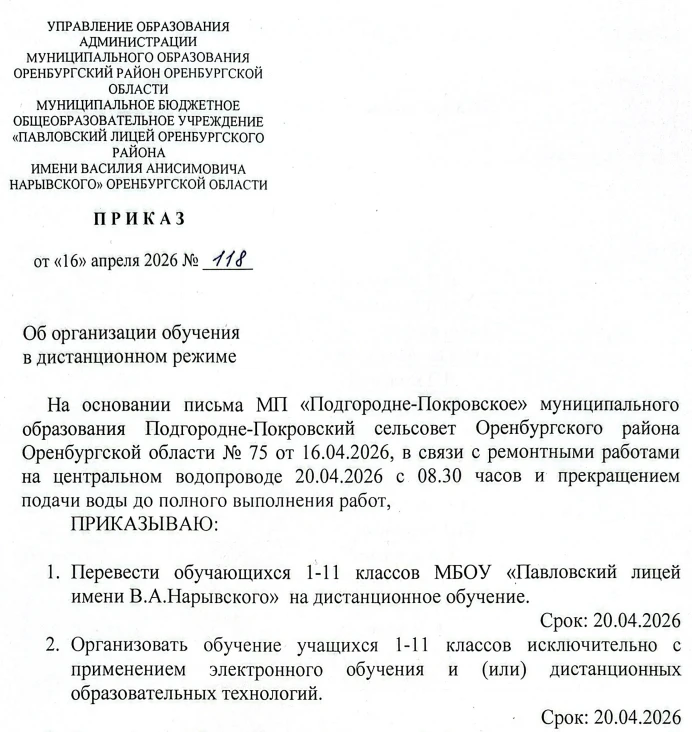 администрация МБОУ «Павловский лицей имени В.А. Нарывского»,