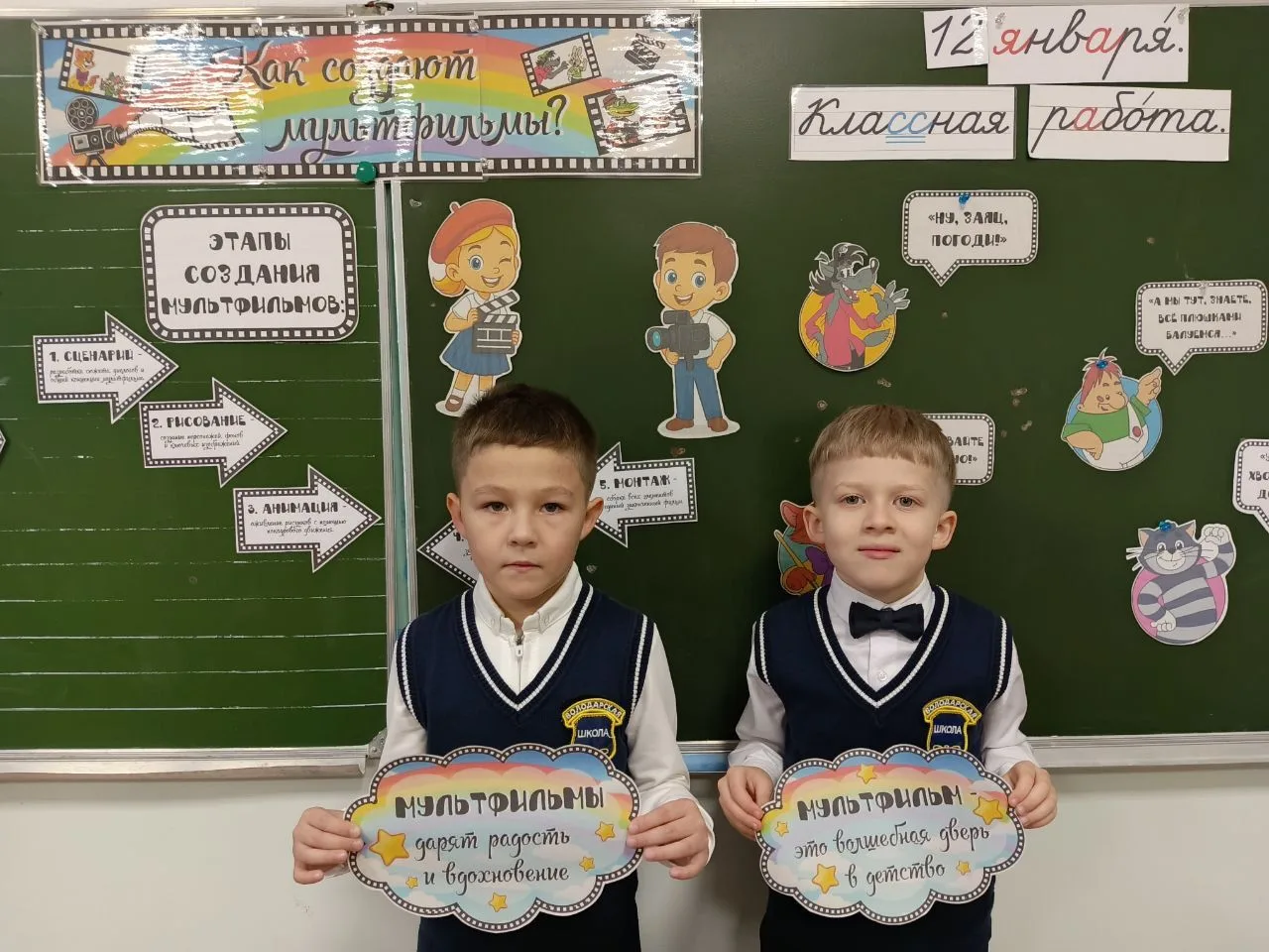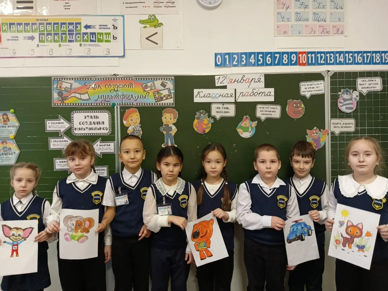 📢📢📢Сегодня, 12 января, первый учебный день в 2026 году начался с поднятия Флага и исполнения Гимна России, а также внеурочного занятия «Разговоры о важном», которое было посвящено теме «Как создают мультфильмы?»