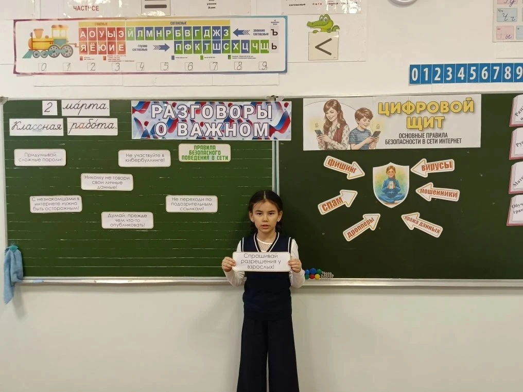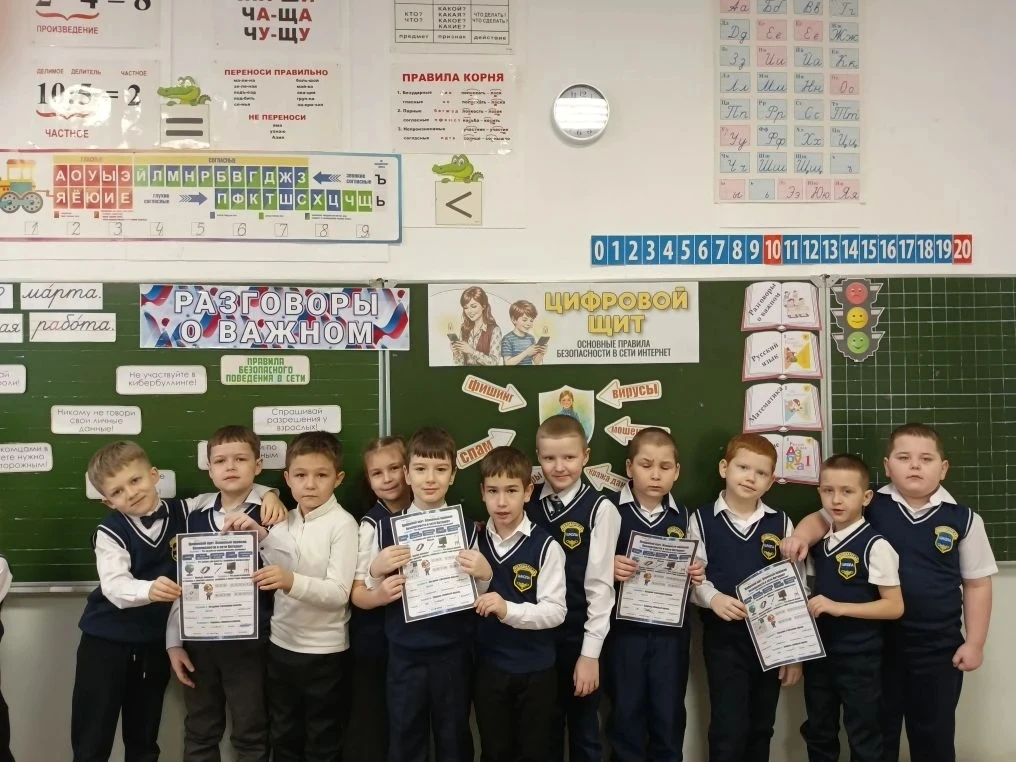 Но на этом образовательный день не закончился! Сразу после линейки ребята отправились на важное занятие – «Разговоры о важном». Сегодняшняя тема – «Цифровой щит. Основные правила безопасности в сети Интернет». 💻 В современном мире это знание – суперсила!