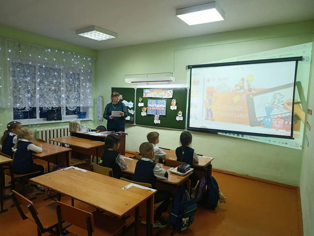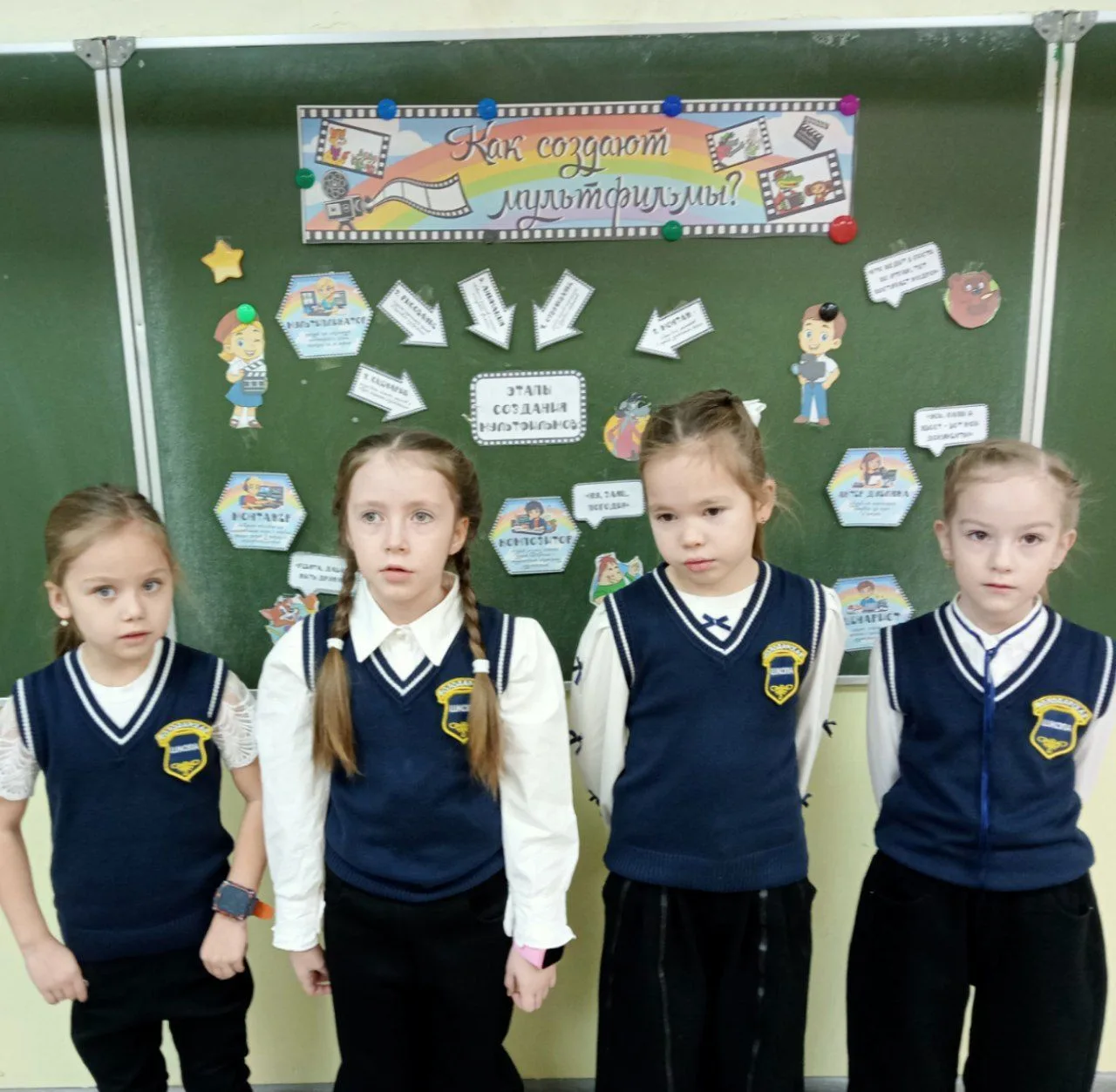 По завершению линейки все обучающие отправились на классные часы «Разговоры о важном», посвященные сегодня теме «Как создают мультфильмы» с целью: