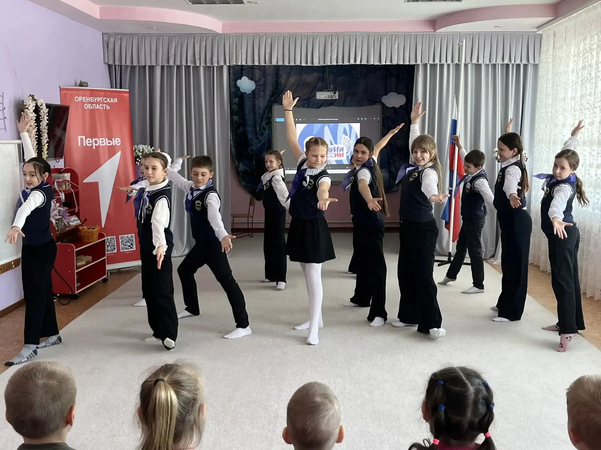 Своей энергией и позитивом во время флешмоба четвероклассники зажгли зал💃💃💃🕺🕺🕺. Маленькие зрители с большим удовольствием присоединились к танцу👫👫👫.