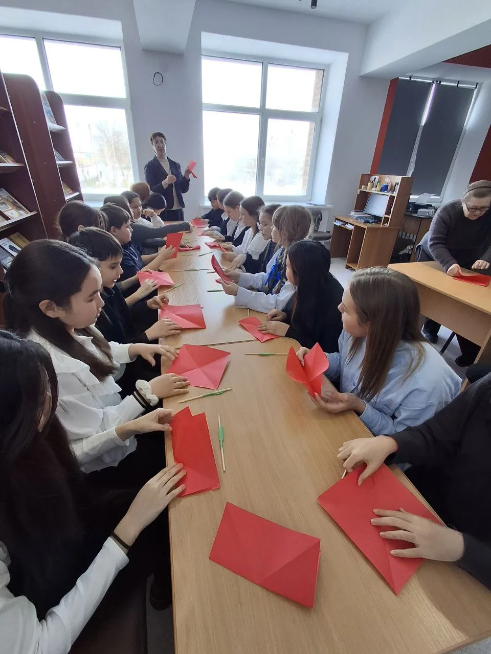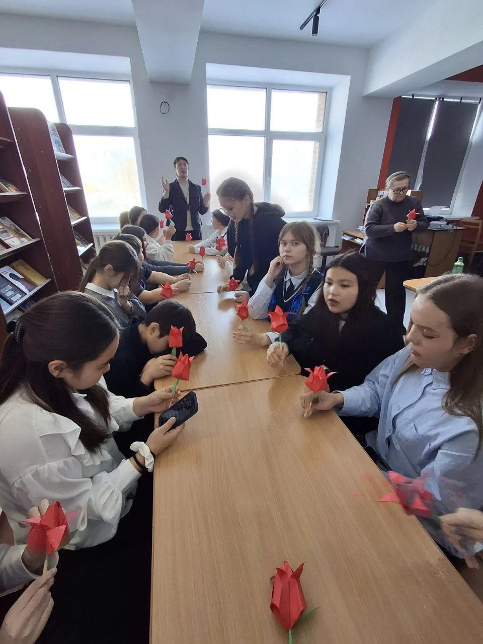 В завершение, ребята приняли участие в символической акции: изготовили «красные тюльпаны» которые затем стали частью инсталляции на улице, отдавая дань уважения и памяти всем, кто погиб в Афганистане.
