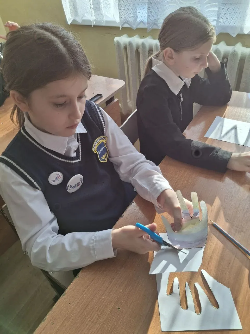 ✨ Затем юные орлята проявили творчество: обвели свои ладошки и создали символический Круг Добра, символизирующий поддержку друг друга и окружающих. ✨