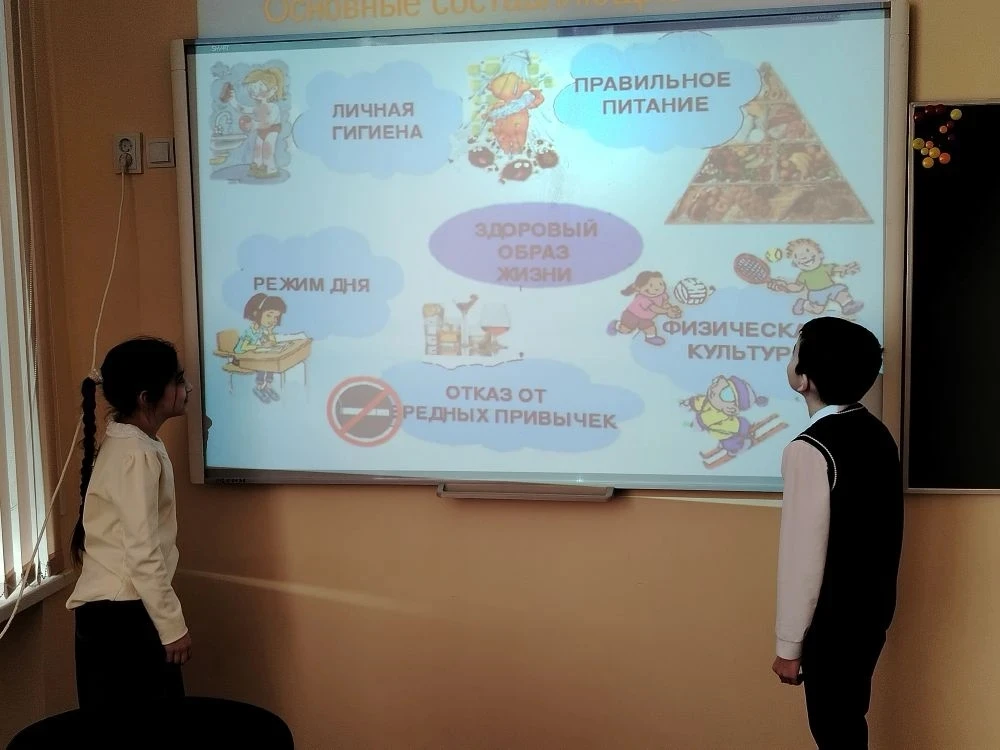 Занятие у ребят 3а класса (Классный руководитель: Габдульманова А.О.) началось с необычного приветствия с учителем и просмотра ролика "Мы за здоровый образ жизни".