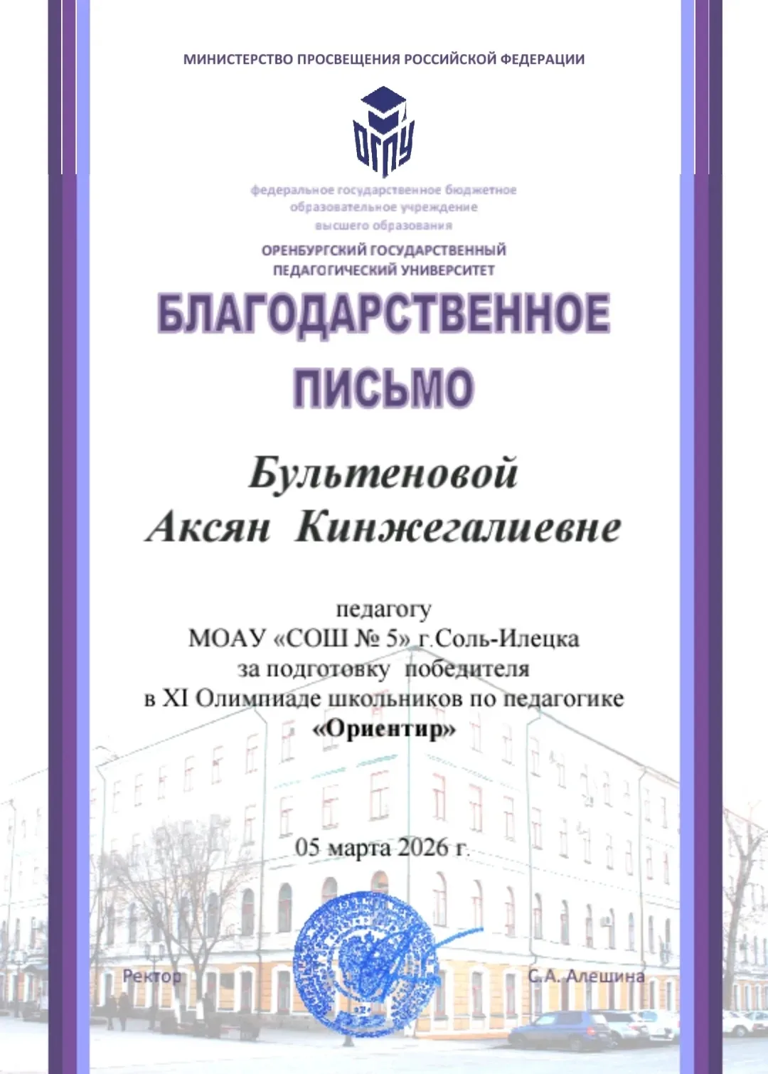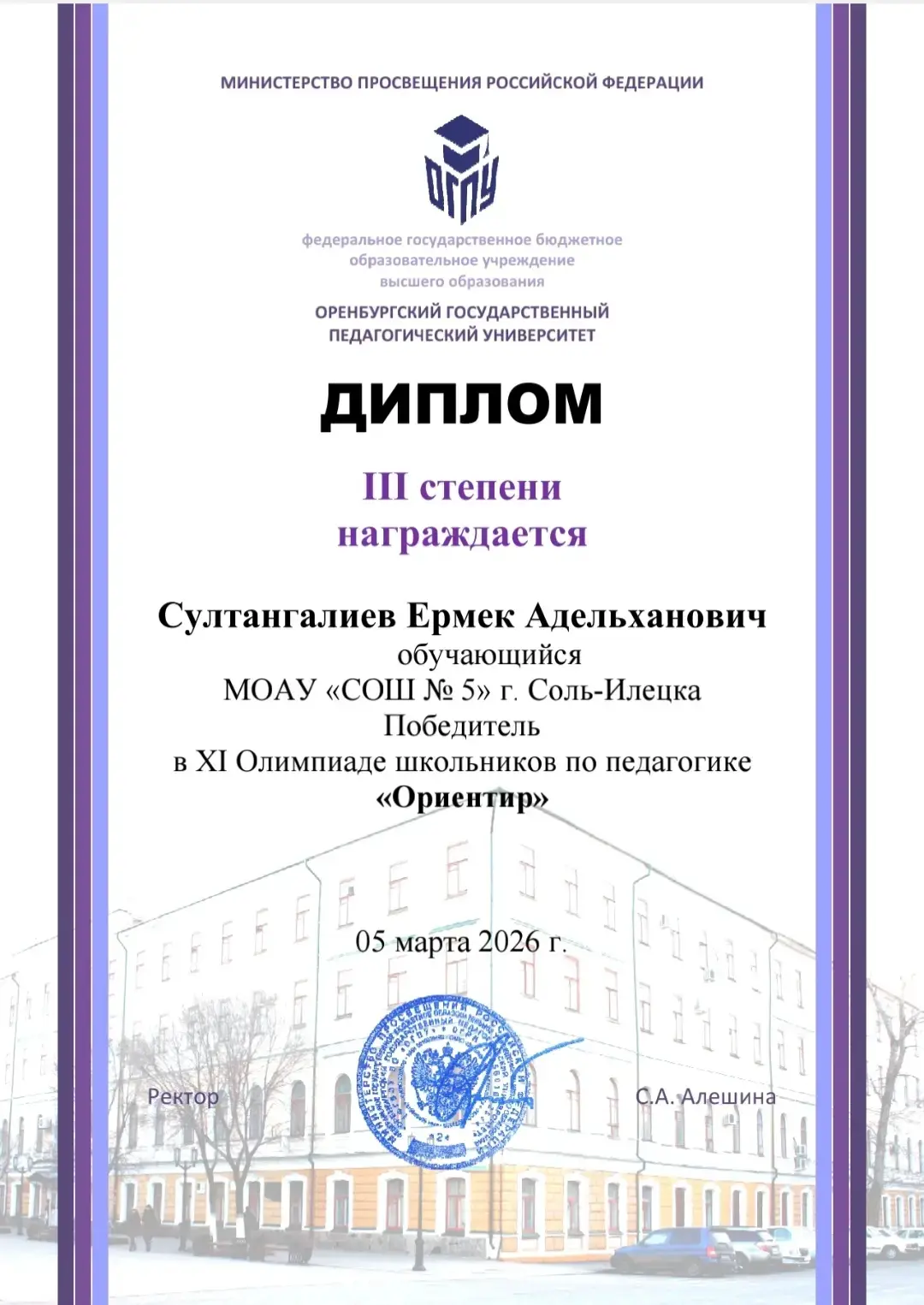 Очередная громкая победа ученика психолого-педагогического класса Султангалиева Ермека в областной олимпиаде по педагогике "Ориентир". Руководитель Аксян Бультенова.