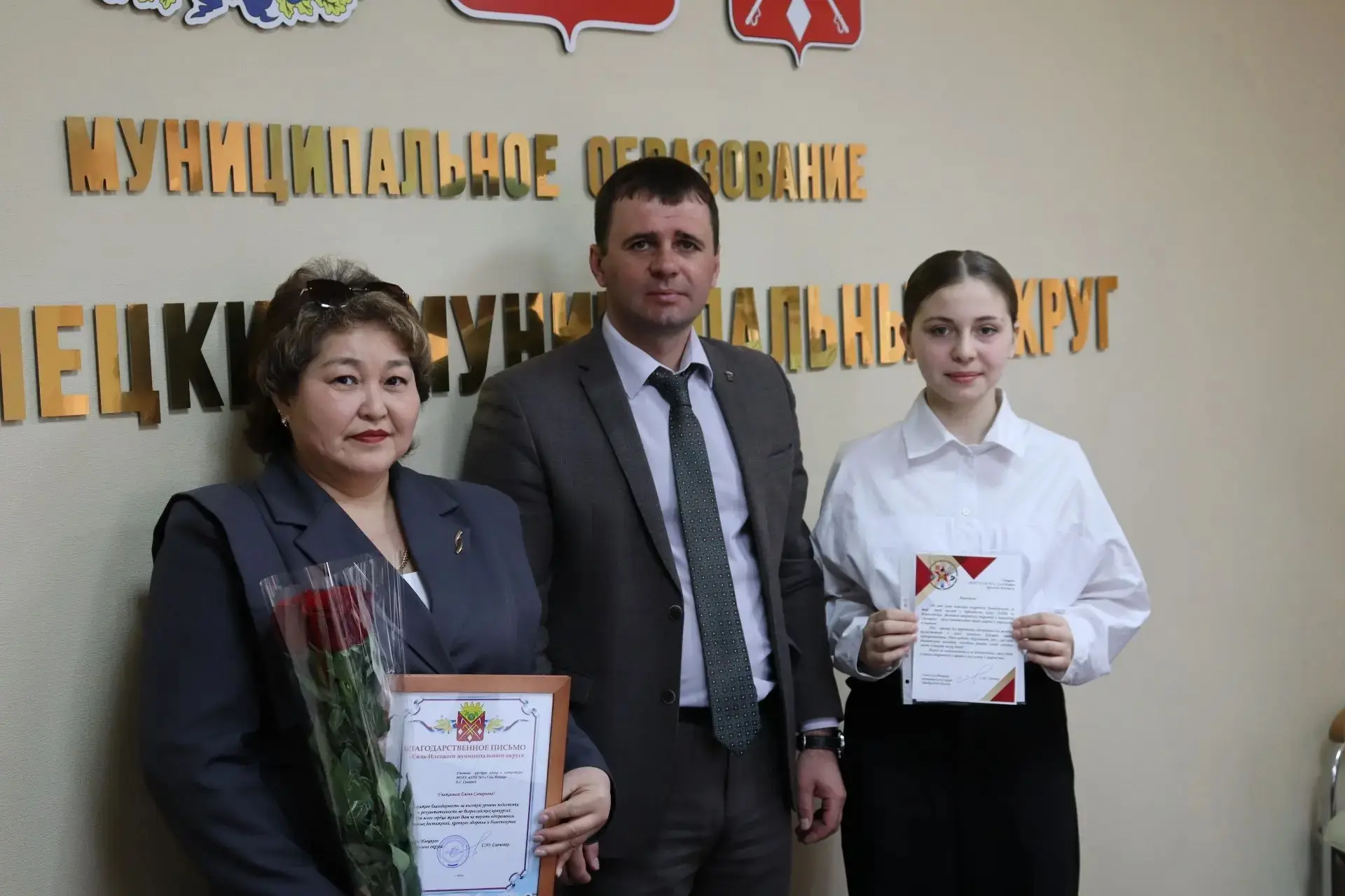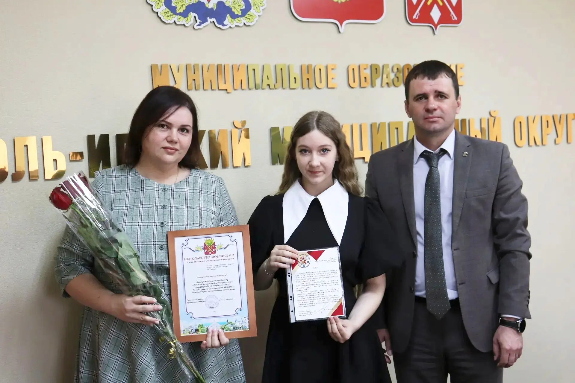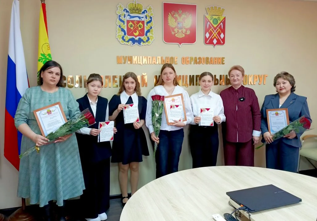 📌Девушки получили из рук главы дипломы и сертификаты. Педагогам Валентине Сакеновой и Елене Санаевой вручены благодарственные письма за подготовку победителей муниципальной научно-практической конференции "Наука. Творчество. Поиск" и призеров всероссийского фестиваля творческих открытий и инициатив "Леонардо".