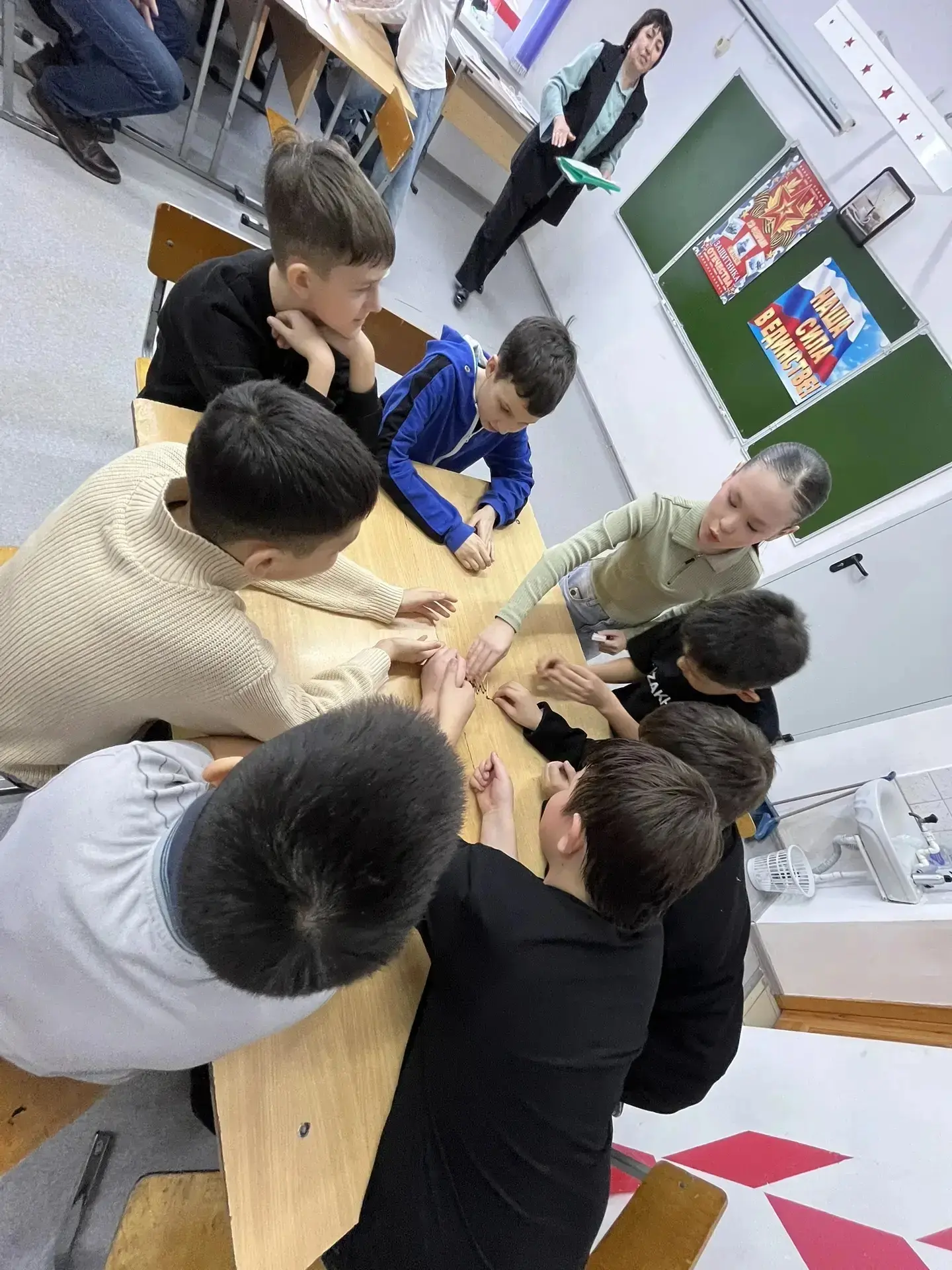 📌На классном праздничном мероприятии в 7а классе присутствовали папы учеников, которые также с удовольствием принимали участие в различных конкурсах. Они соревновались в шитье пуговиц, чистке картофеля и даже играли в игру со стульями. Кроме того, папы участвовали в увлекательных викторинах, демонстрируя свои знания и смекалку.